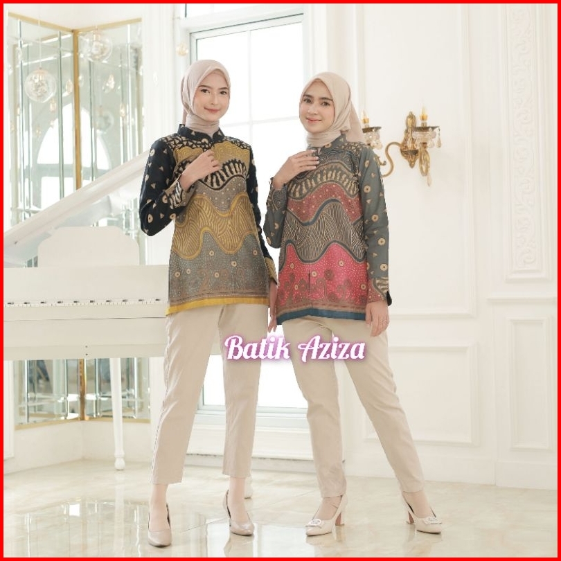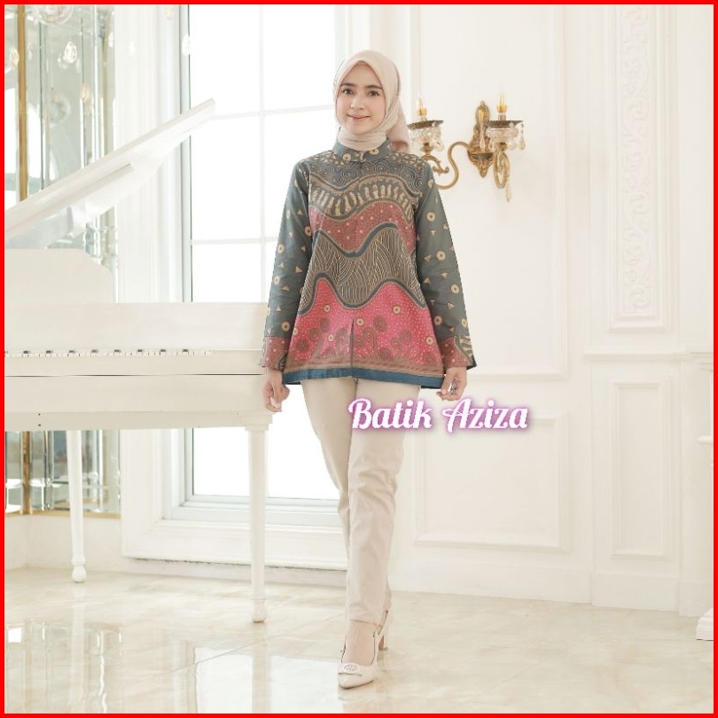 Batik Kerja Wanita Modern Atasan Batik Wanita Resleting Depan Lengan Panjang Blus Widuri By Batik Aziza