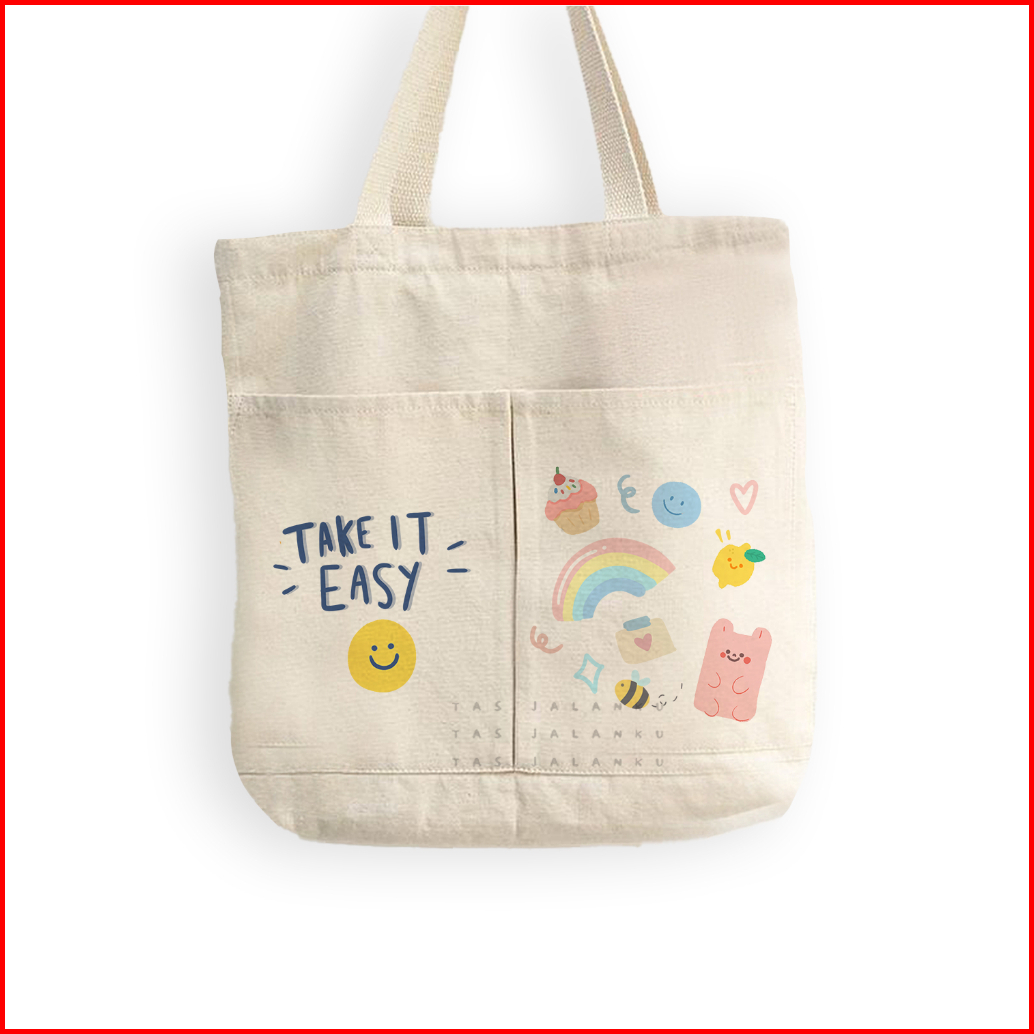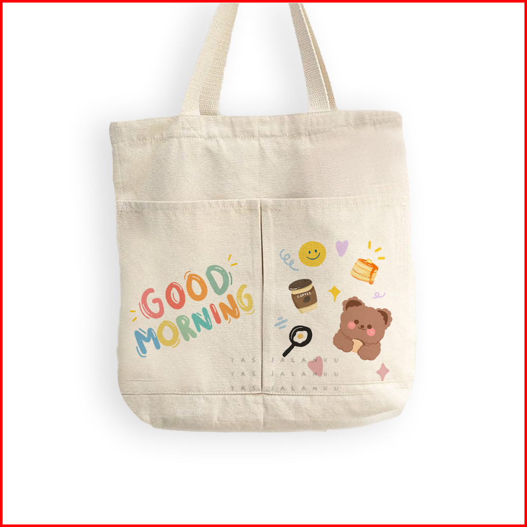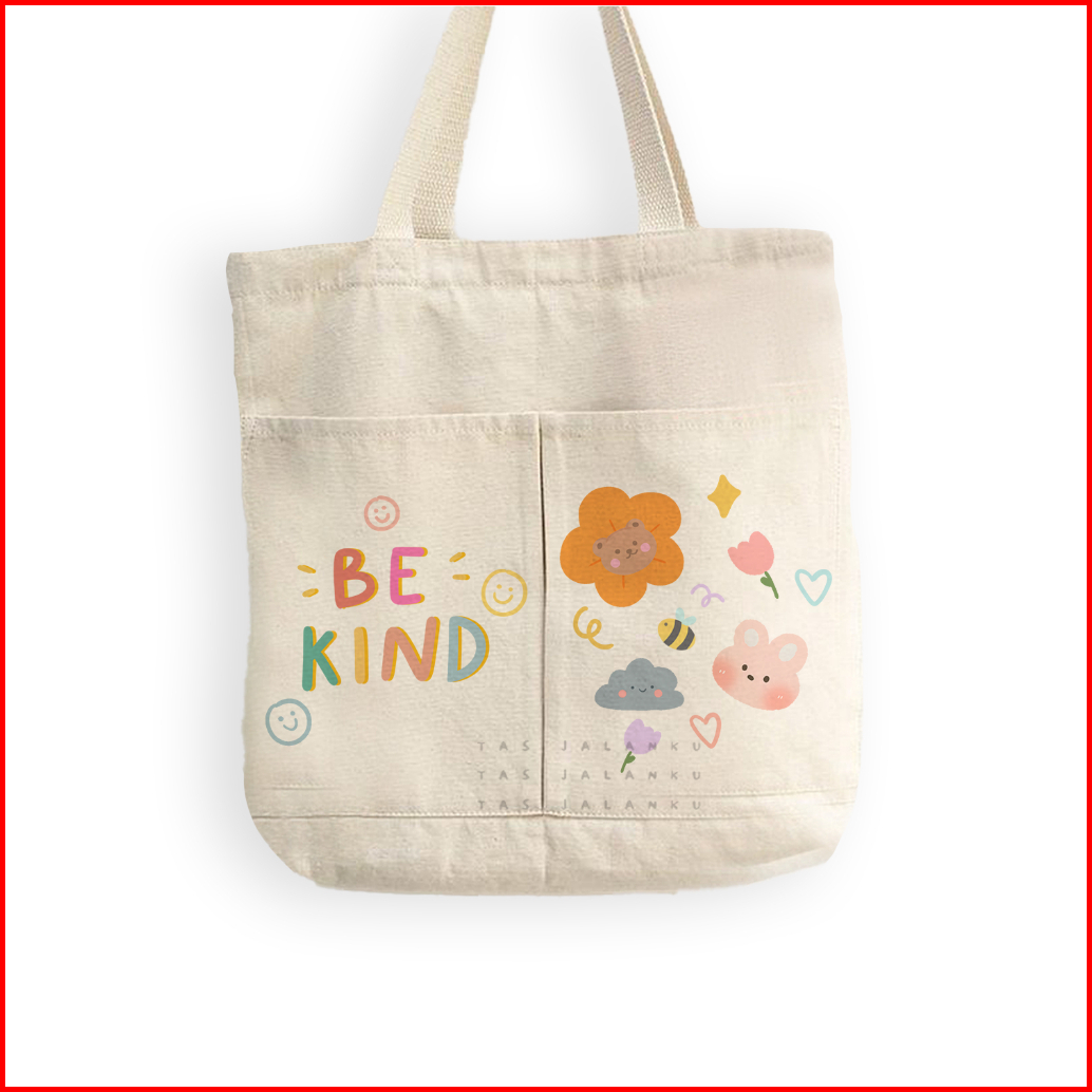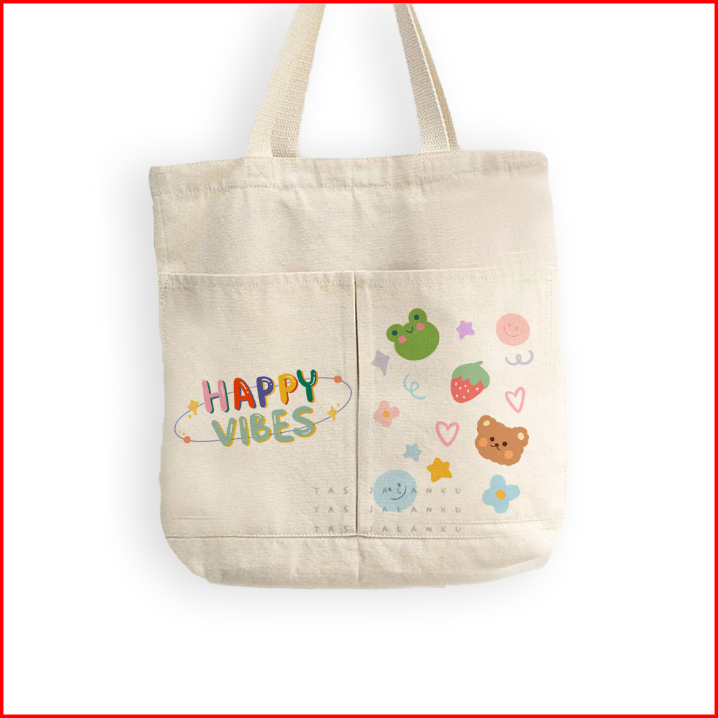 Tasjalanku - Totebag Kanvas Kantong Karakter Lucu Kata Kata Motivasi Dua Kantong Depan Muat Laptop Cocok Untuk Sekolah K