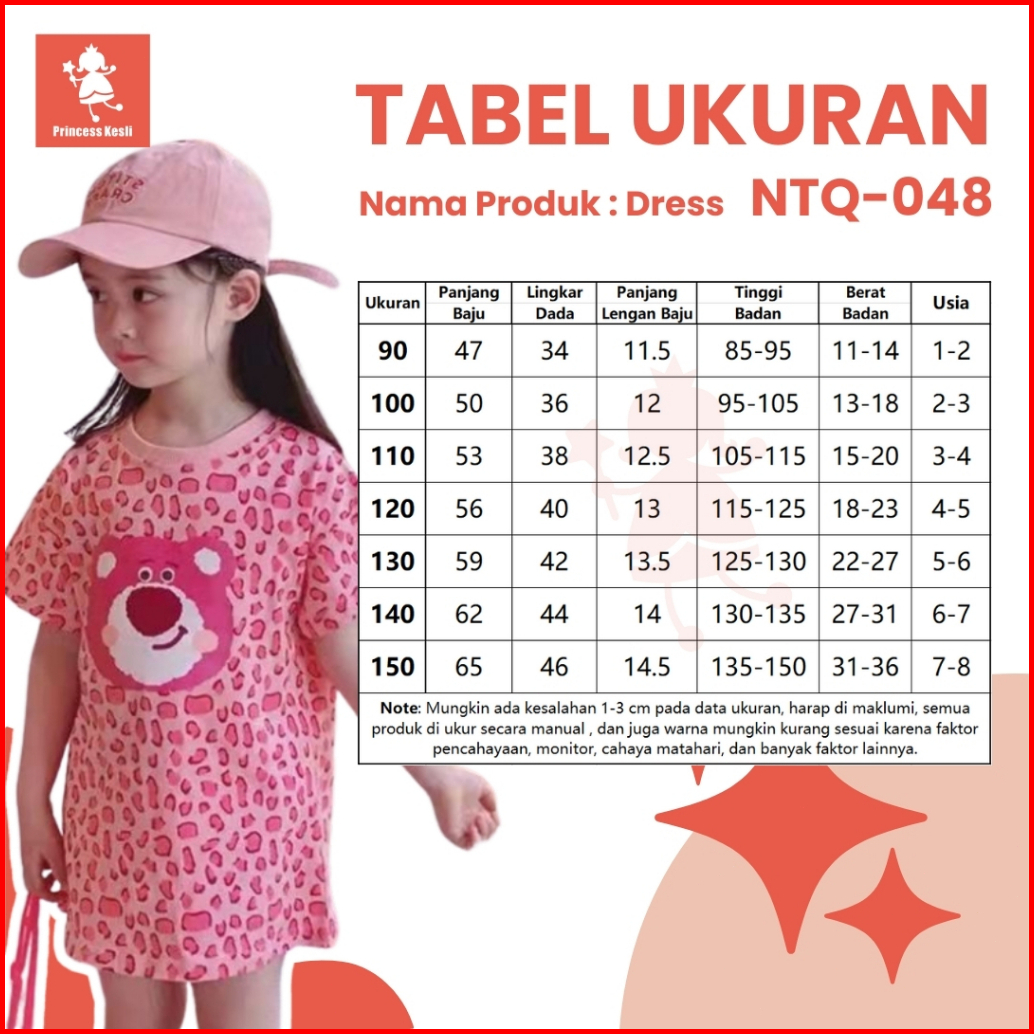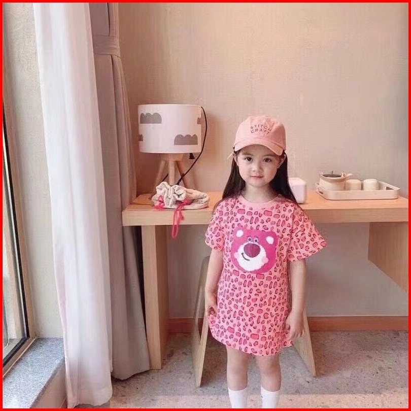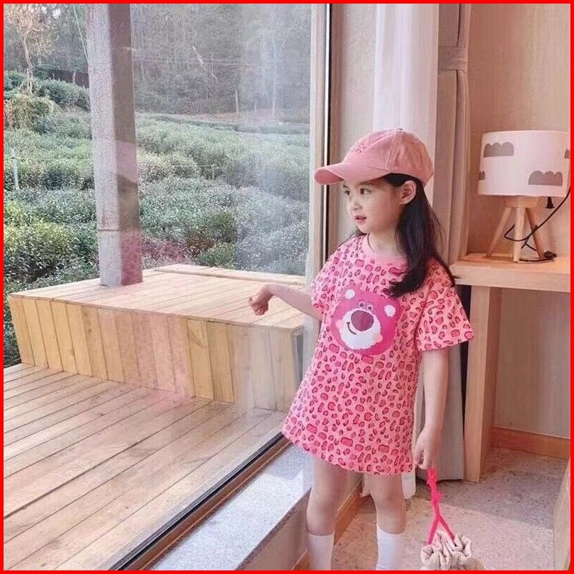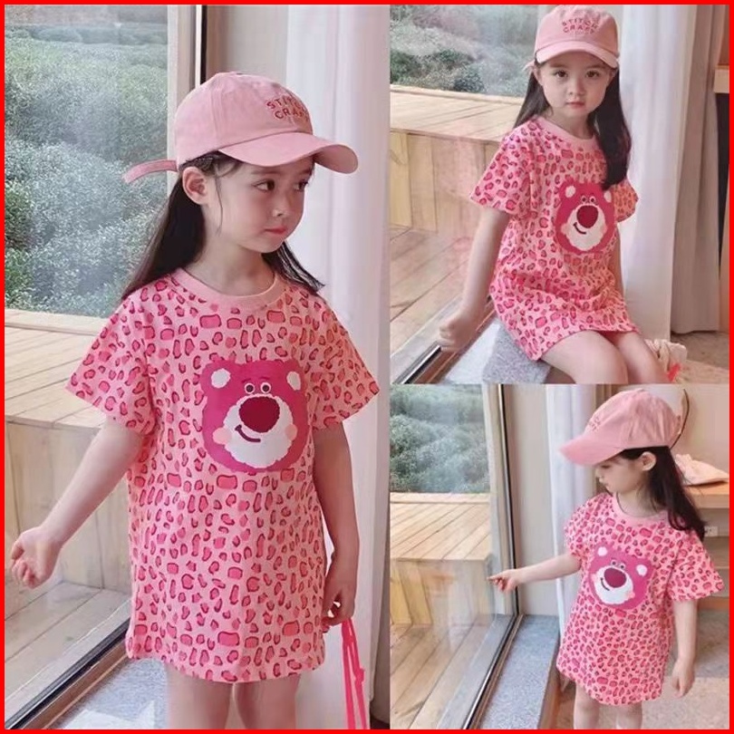 Princess Kesli 1-10 Tahun Leopard Lotso Kaos Anak Oversize Perempuan T-shirt Cewek Lucu Bahan Katun Nyaman Lembut Kids