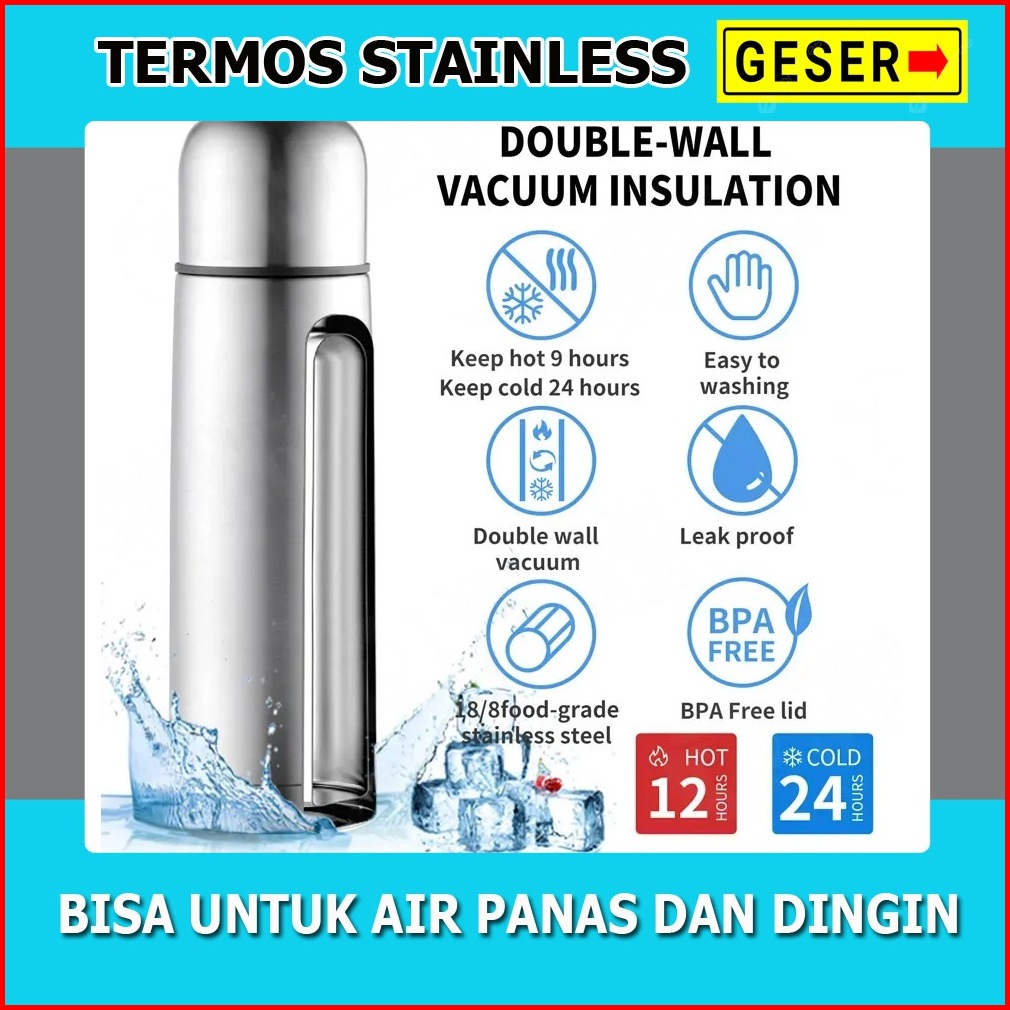 Termos Air Panas Dingin Stainless Vacum 1000ml Termos Vacuum Flask 500ml