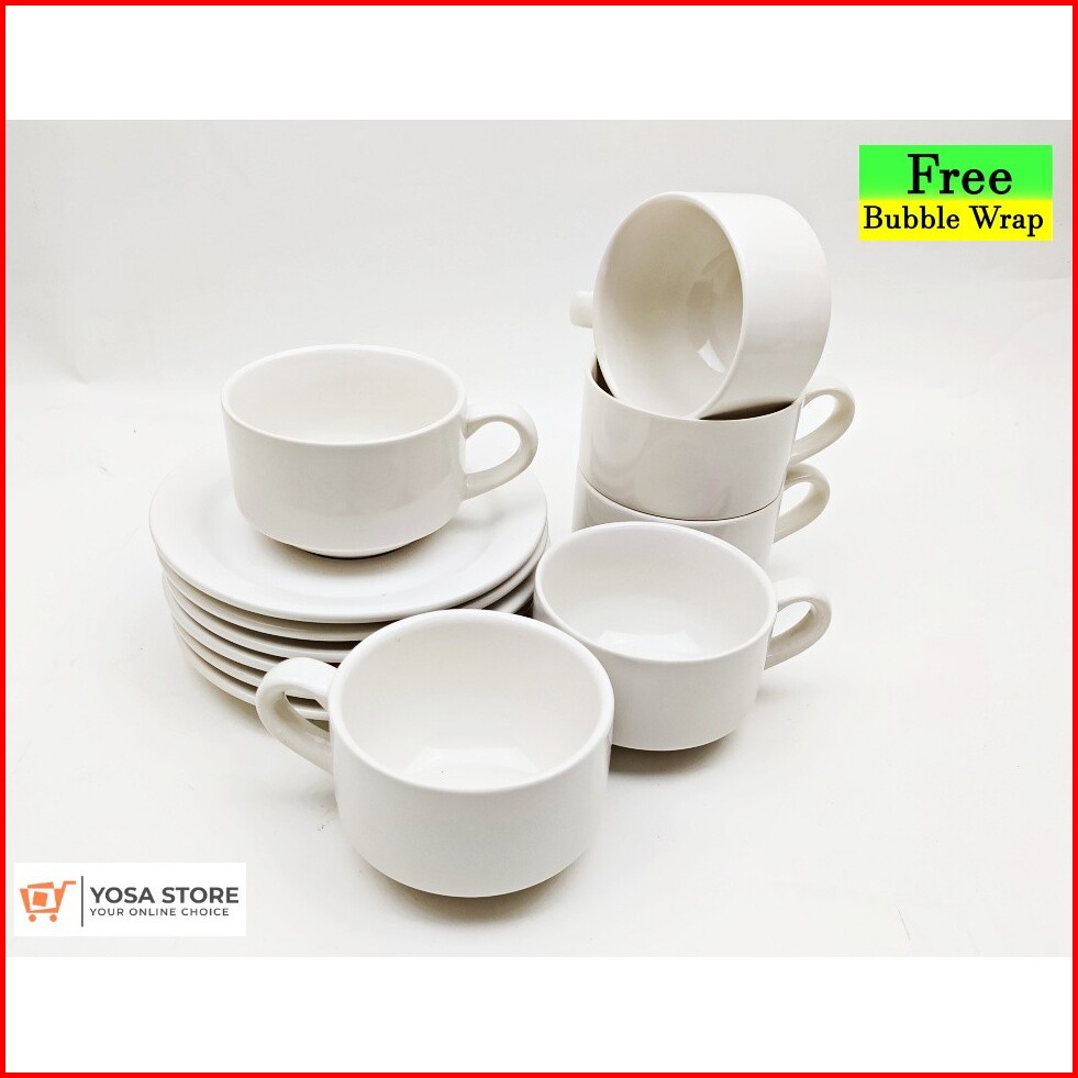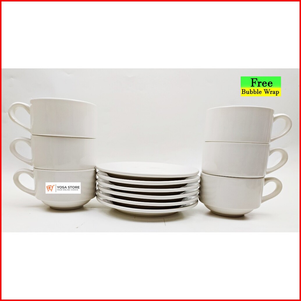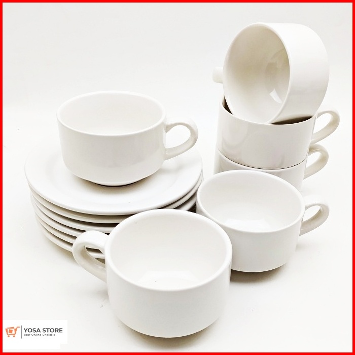 Cangkir Set Keramik Teh Kopi Hotel Putih Polos 12 Pc - Premium Quality