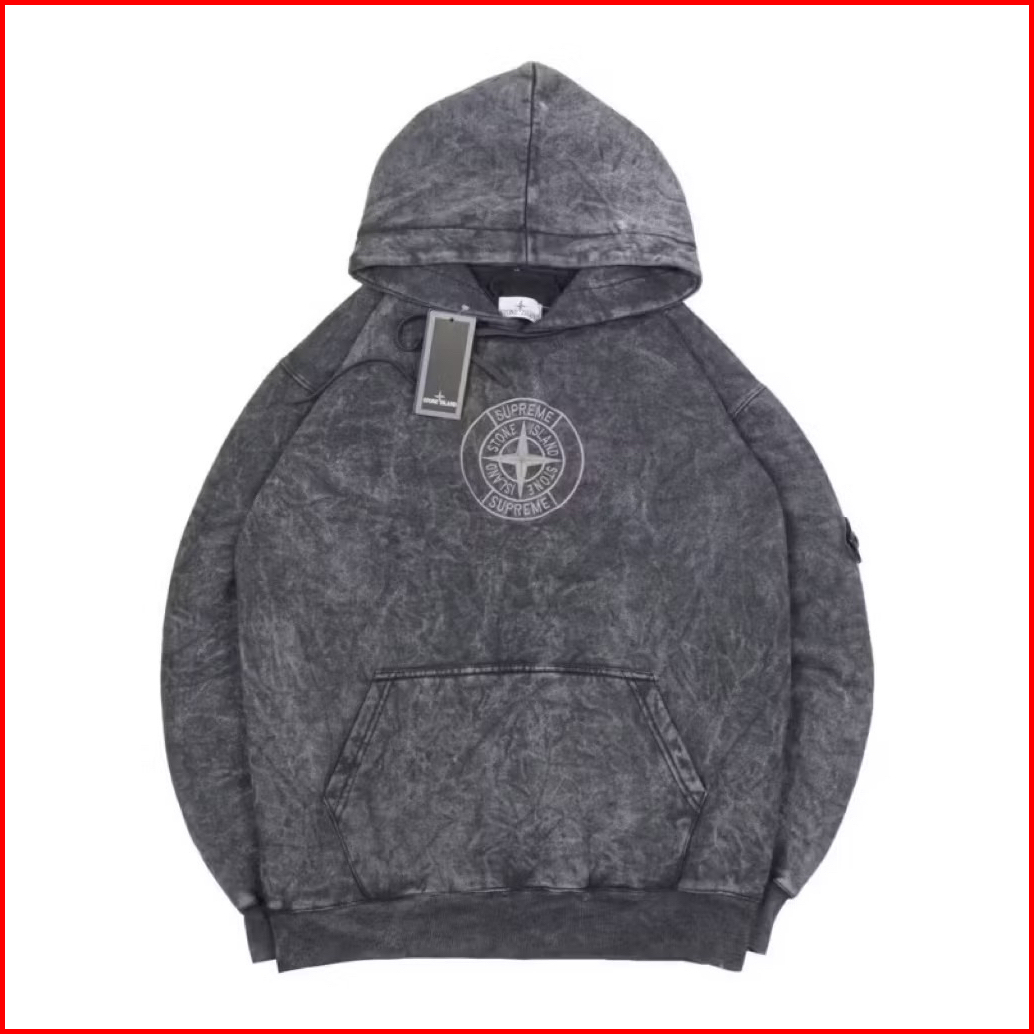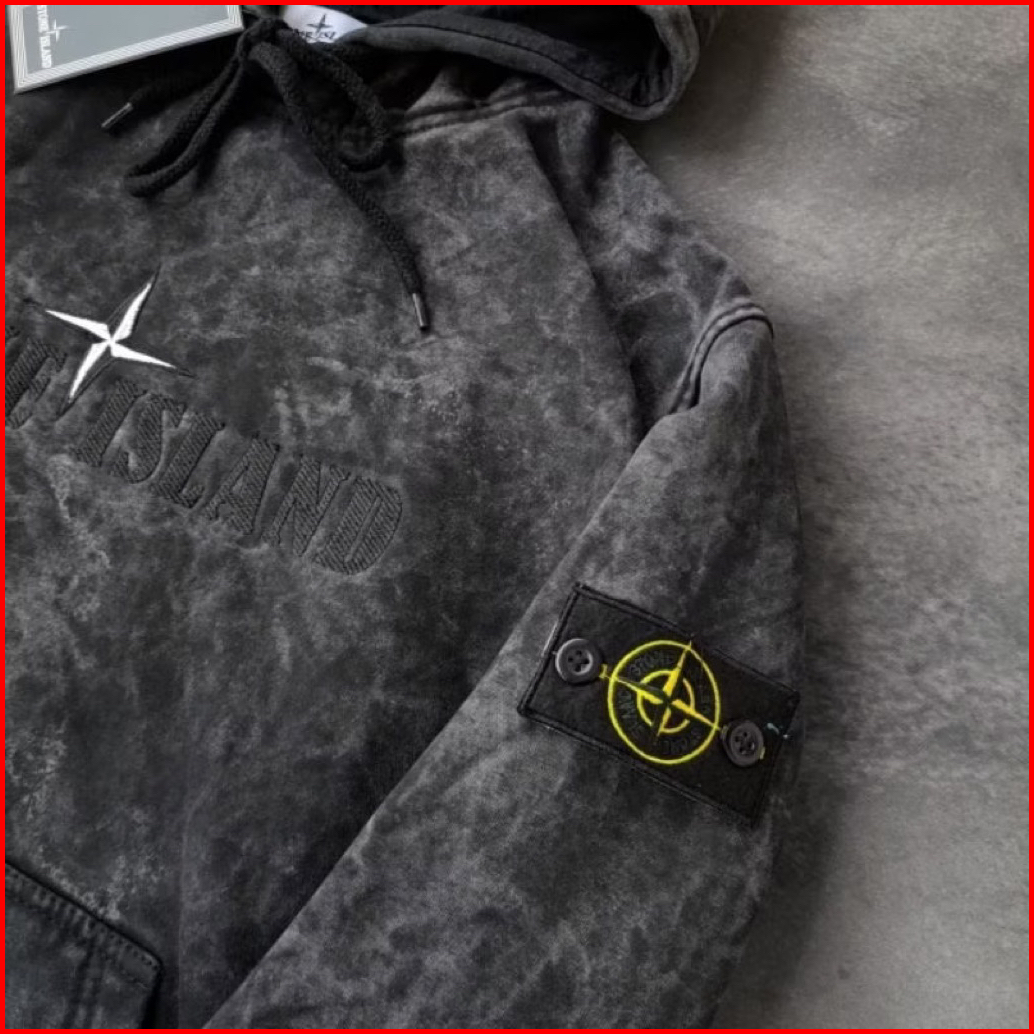 Hoodie Jaket Sweater Stoune Islands Logo Bordir Hitam Fulltag Aksesoris
