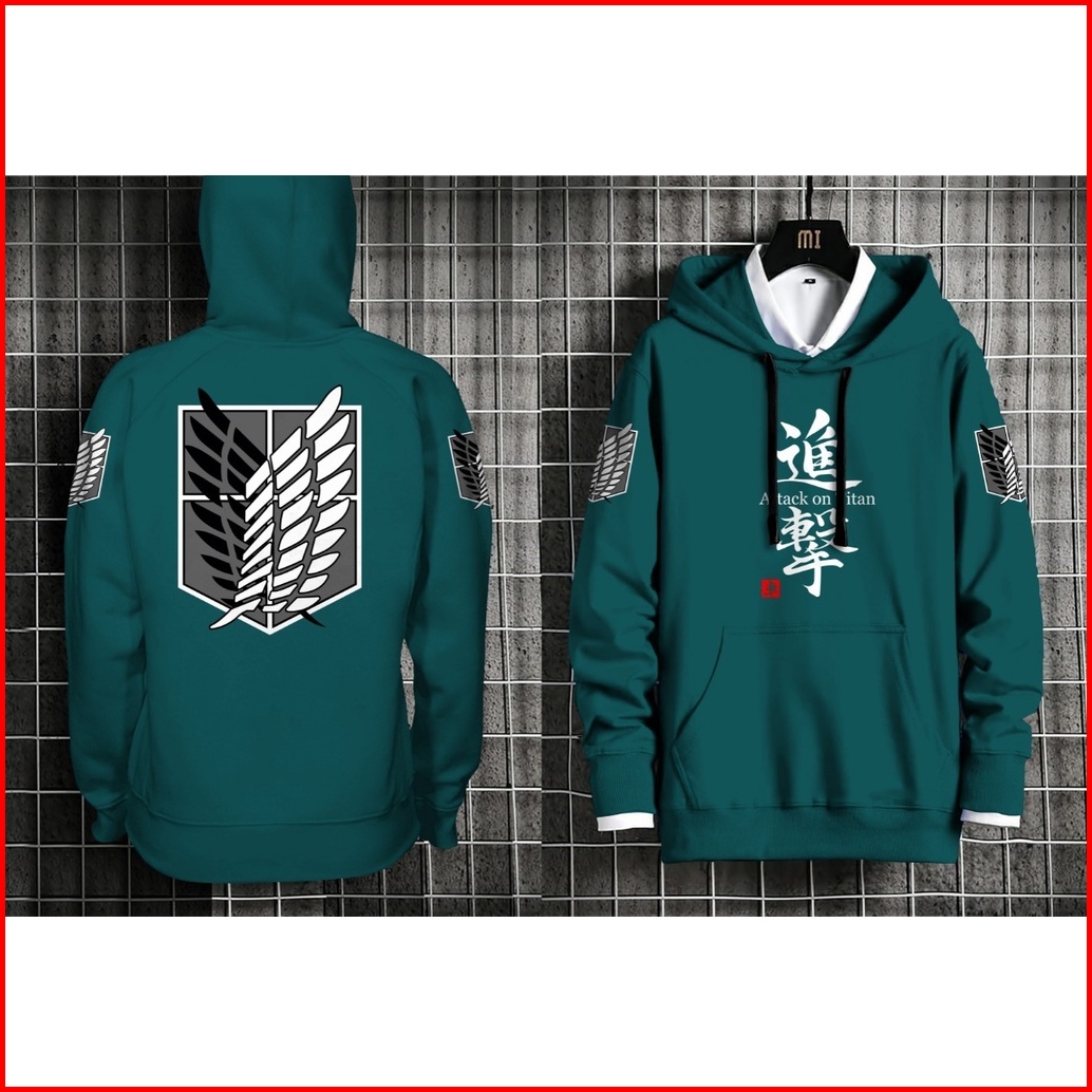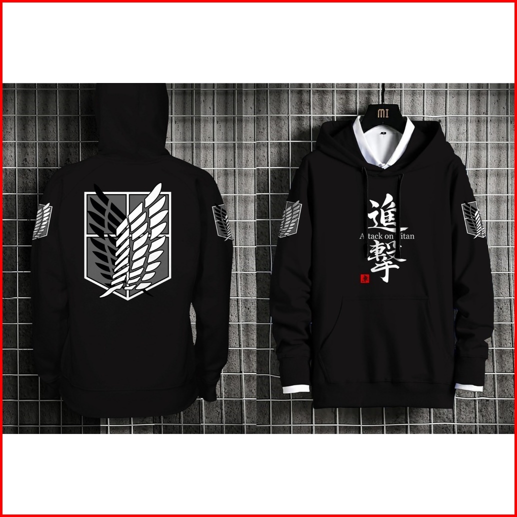 Yu Taka - Hoodie Pria Attack On Titan Jaket Hoodie Anime Pria Sweater Hoodie Distro Pria Bahan Fleece Murah Uk L - Xl