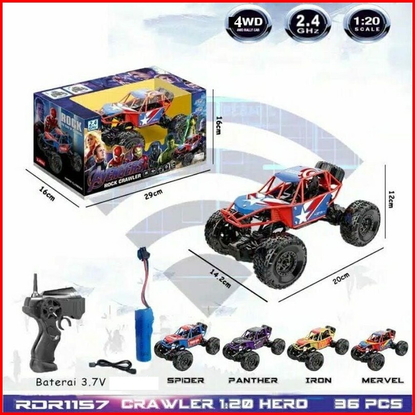 Promo Mainan Anak Mobil Remote Kontrol Rock Crawler Avengers Off-road Radar Ban Besar Body Alloy Rc 1 20 2.4ghz