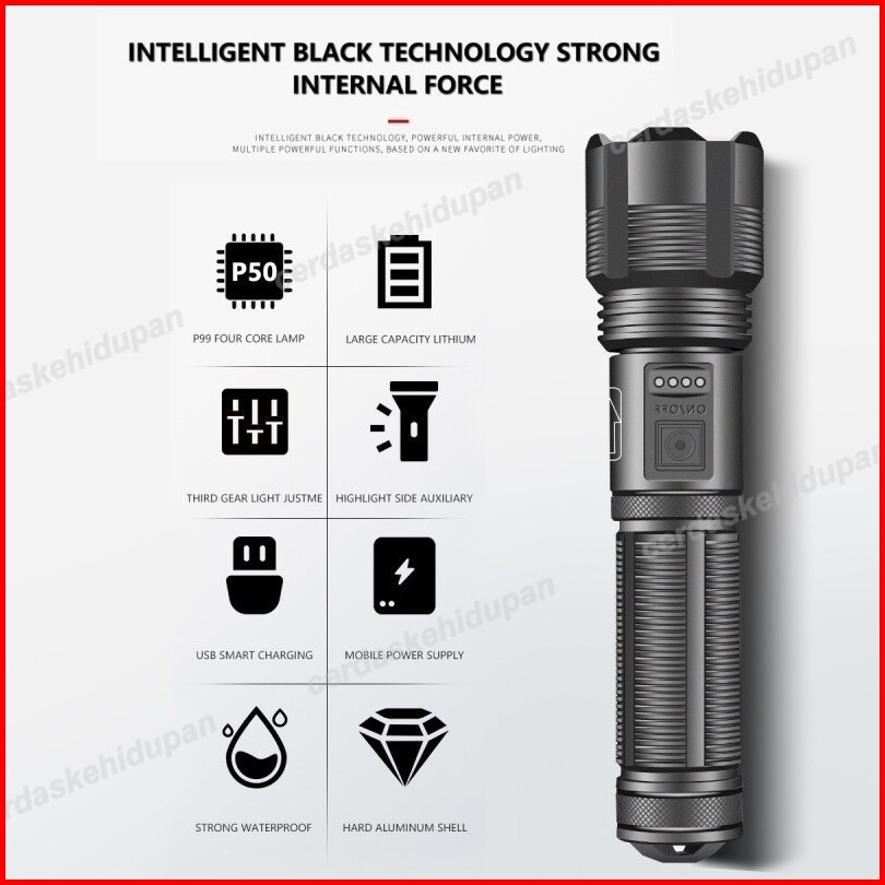 Anbolt Senter Led Super Terang Jarak Jauh Anti Air Senter Led 90000 Lumens Original Usb C Rechargeable Zoom Flashlight W