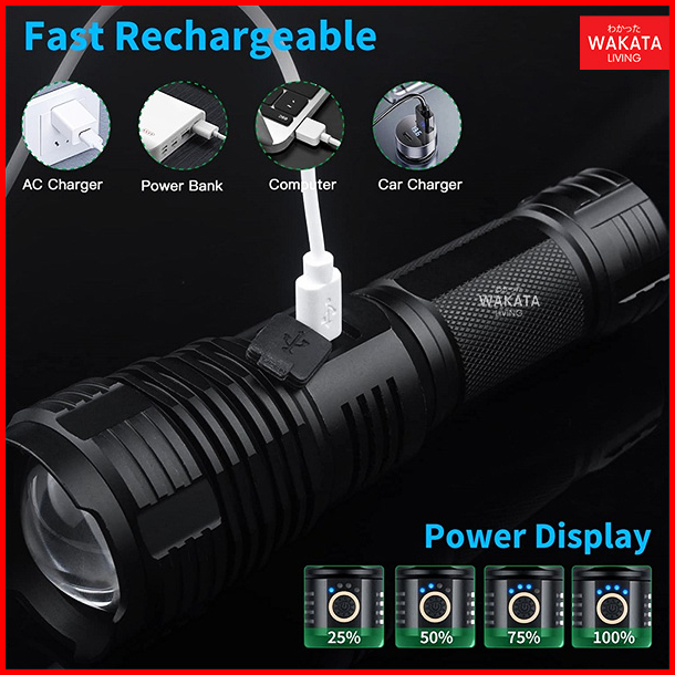 Senter Led Super Terang Mini Rechargeable Black 30w