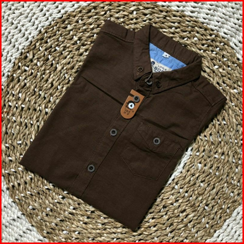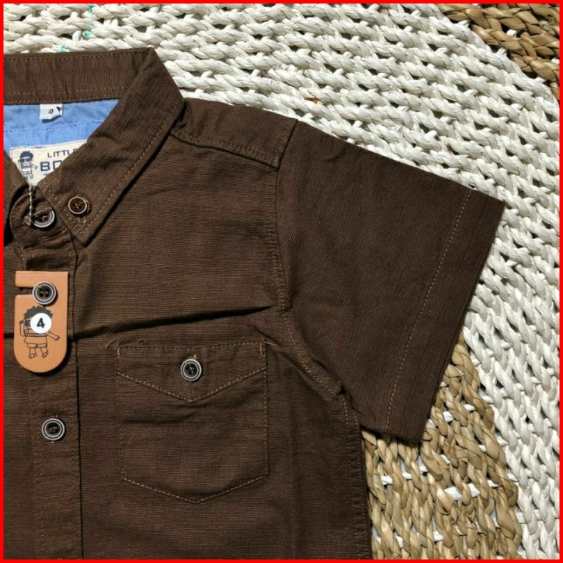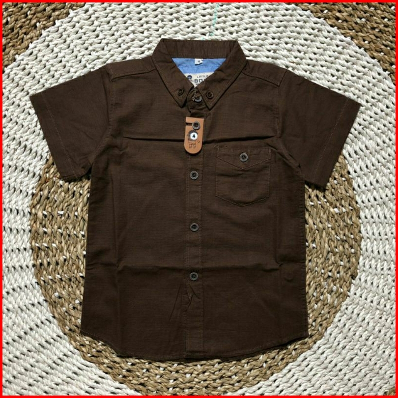 Kemeja Anak Laki-laki Lengan Pendek Warna Choco Bahan Katun Uniqlo Premium