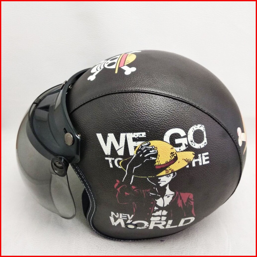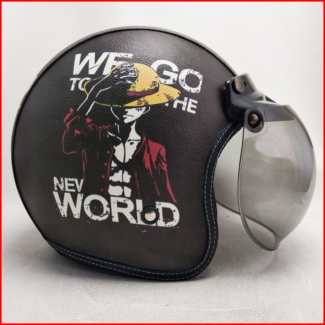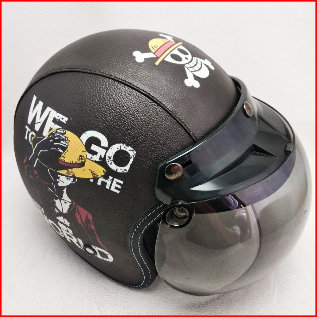 Helm Retro Bogo Kulit Monkey D Luffy One Piece Kaca Bubble Halfface Helmet Helm Motor