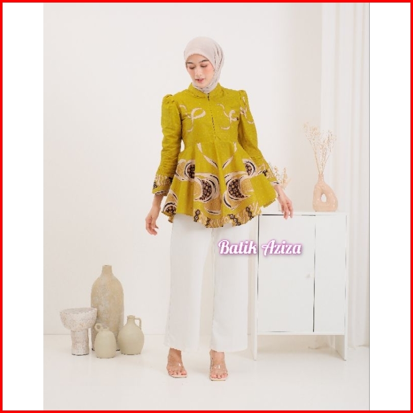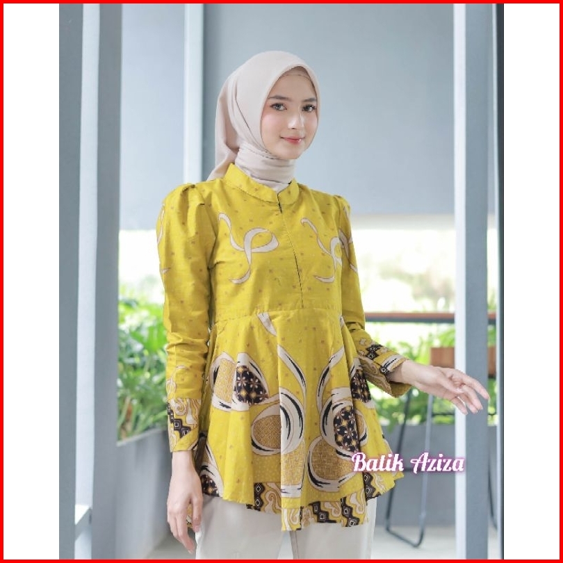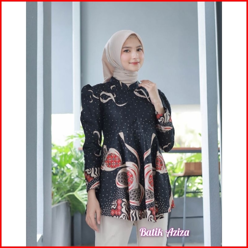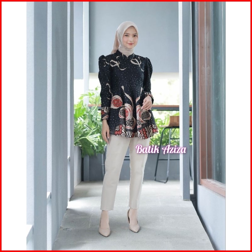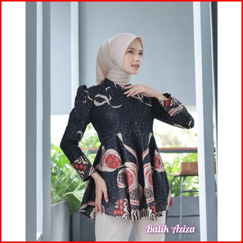 Batik Wanita Modern Atasan Batik Wanita Puffy Shoulder Peplum Payung Lebar Blus Aurora Kain Katun By Batik Aziza