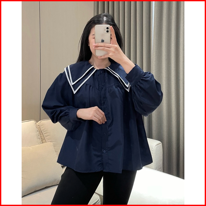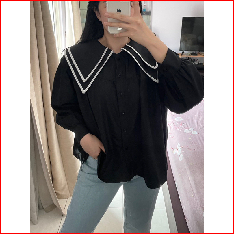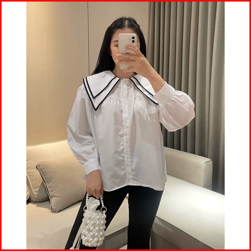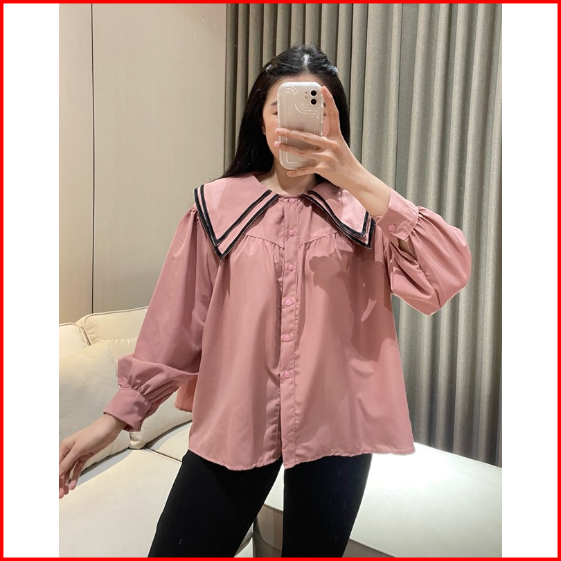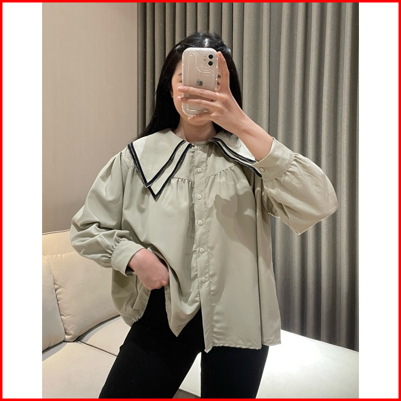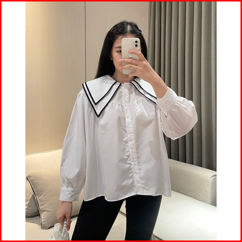 Eska Clothing - Hana Blouse Kemeja Bordir Wanita Korean Style Kekinian Kantoran Elegan Kerah Sailor