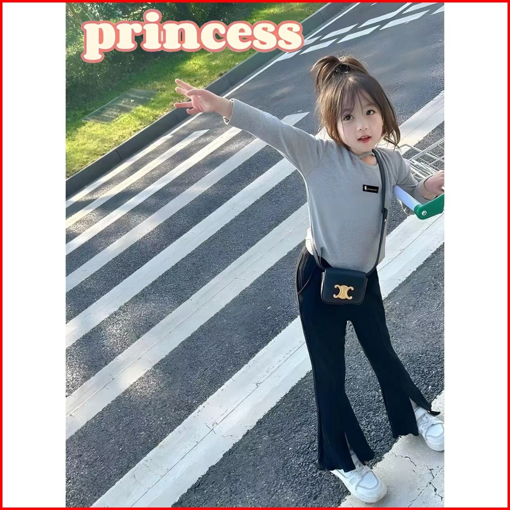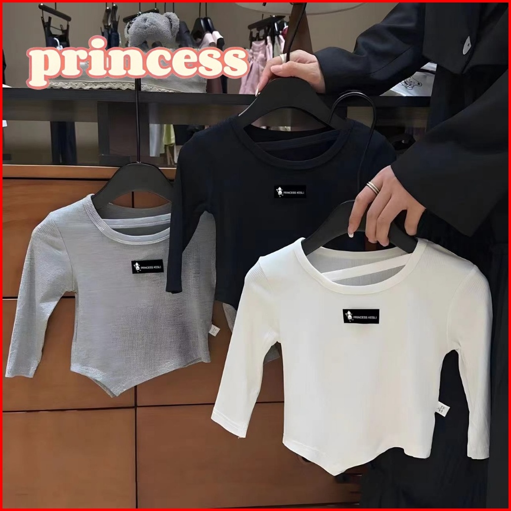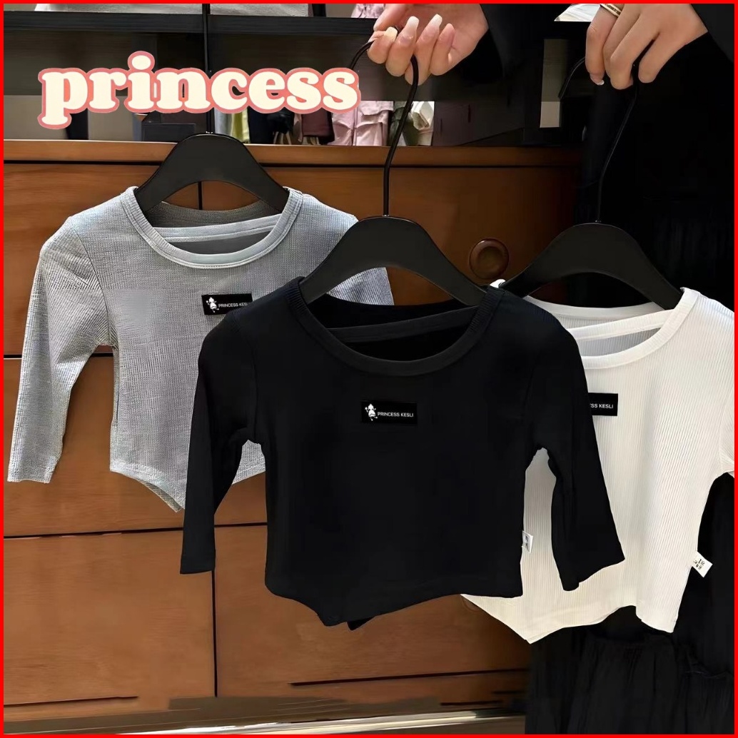 Princess Kesli 2-11 Tahun Croptop Polos Lengan Panjang Atasan Kaos Anak Perempuan Kids Katun