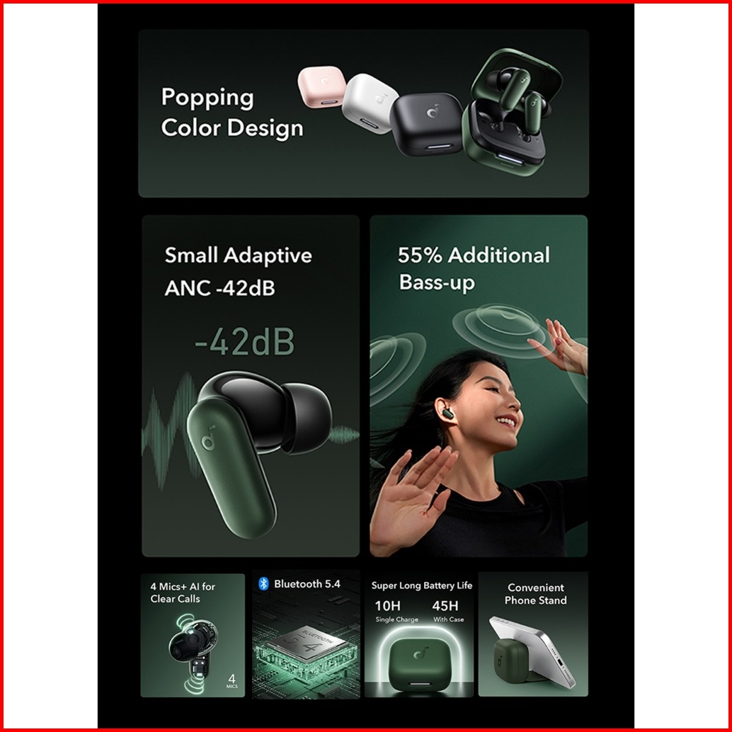 New Launch Soundcore Anker R50i Nc Earbuds Adaptive Noise Canceling Headset Earphone Bluetooth 5.4 Tws Low Latency For G