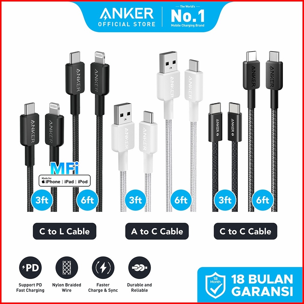 Anker Fast Charging Kabel Charger Mfi Iphone X 11 12 13 14 15 16 Pd Type C To C Usb A And Lightning 15w 60w 240w 3ft 6ft