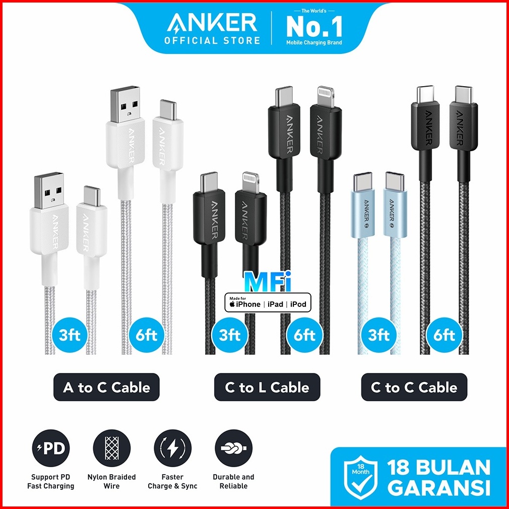 Anker Kabel Charger Mfi Iphone X 11 12 13 14 15 16 Pd Type C To C Usb A And Lightning Fast Charging 15w 60w 240w 3ft 6ft