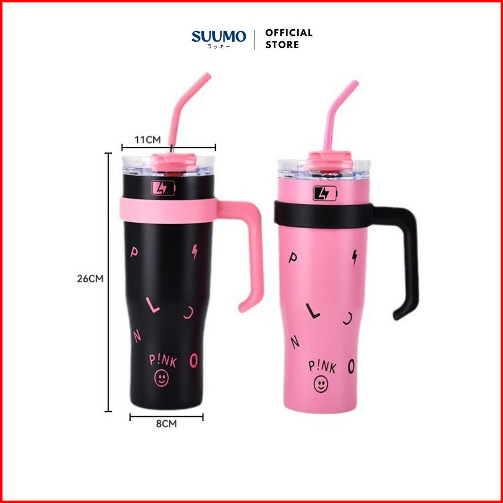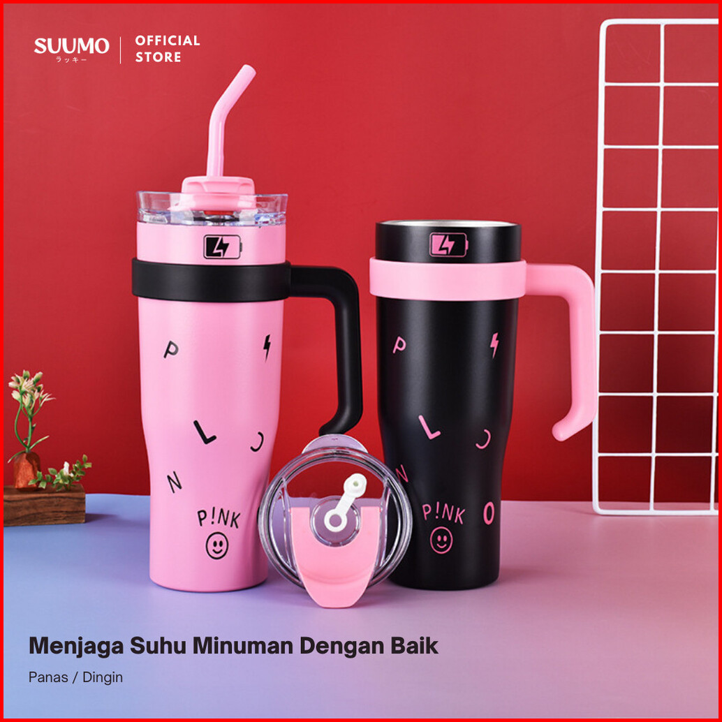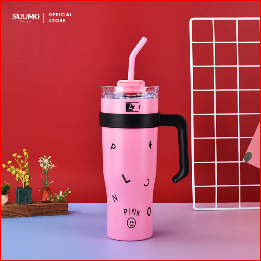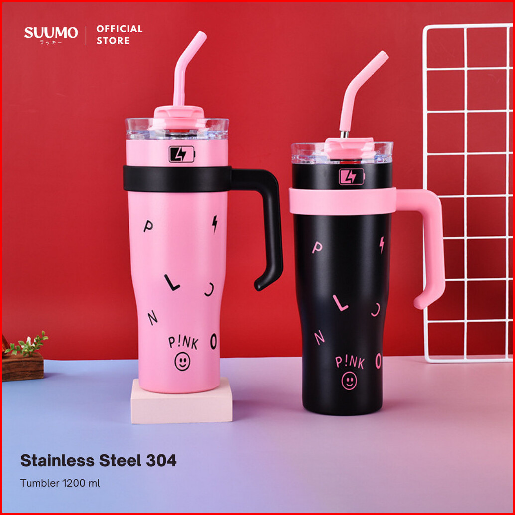 Suumo Tumbler Straw Cup Cangkir Mobil Portabel 1200ml Pink Edition
