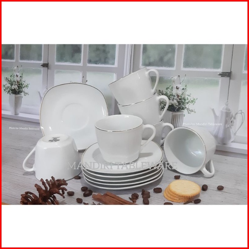 Best Seller 6 Psg Cangkir Set Keramik Segi 220 Ml Line Cangkir Kopi Cangkir Teh Best Quality