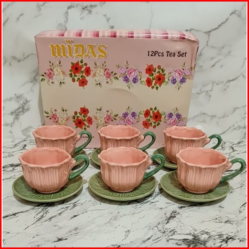 Cangkir Tatak Set Bunga Tulip Midas Isi 6 Pcs Per Set Cangkir Set Flower Midas Pink Cangkir Kopi Teh