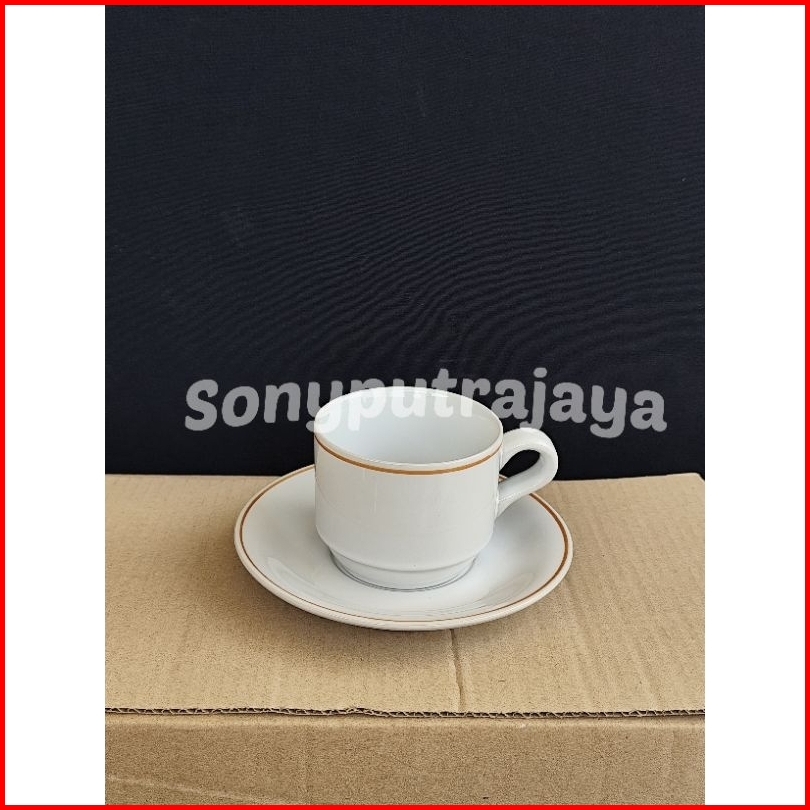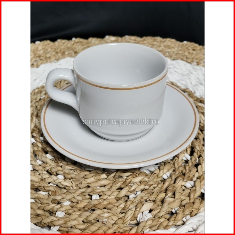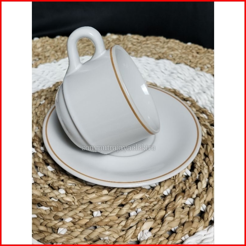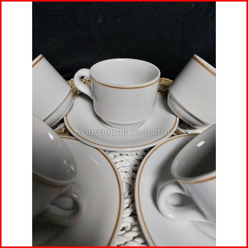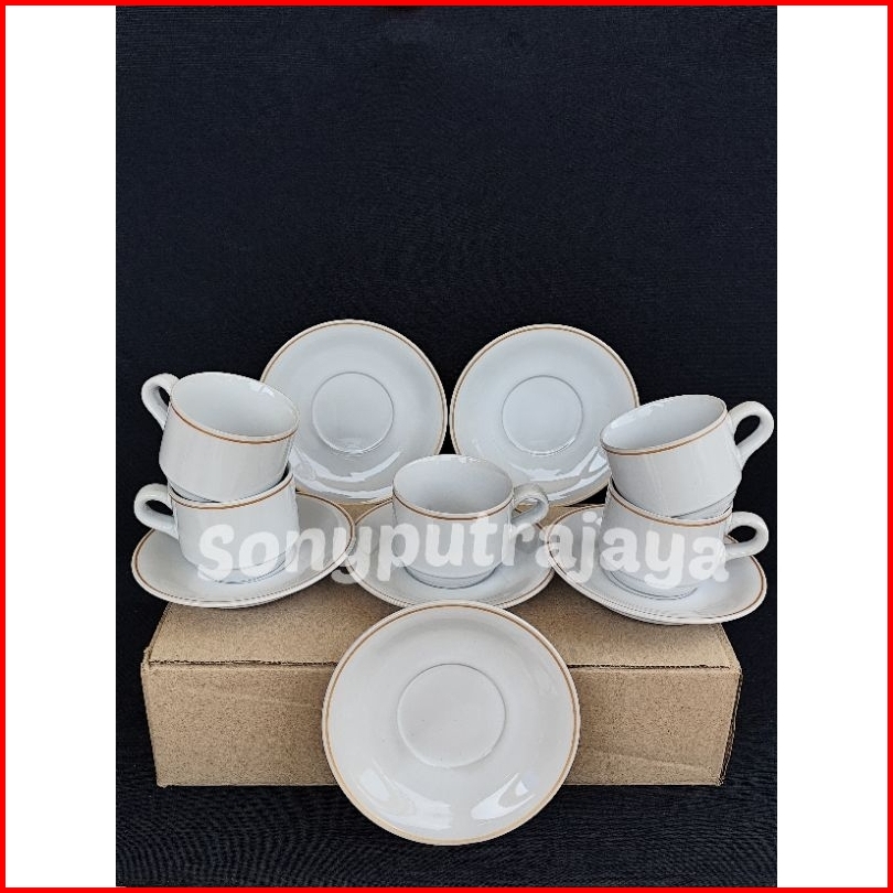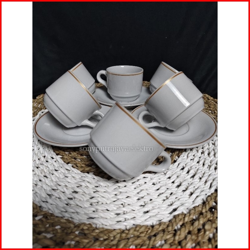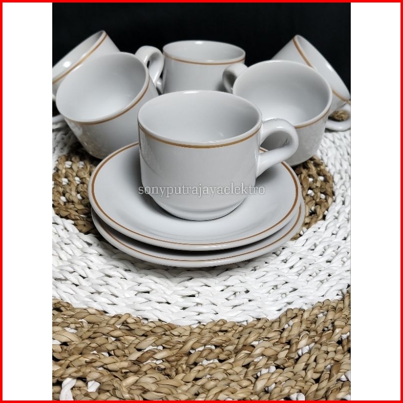 Cangkir Set Keramik Lis Isi 6 Cangkir 6 Tatakan Gelas Kopi-gelas Teh-cangkir Kado