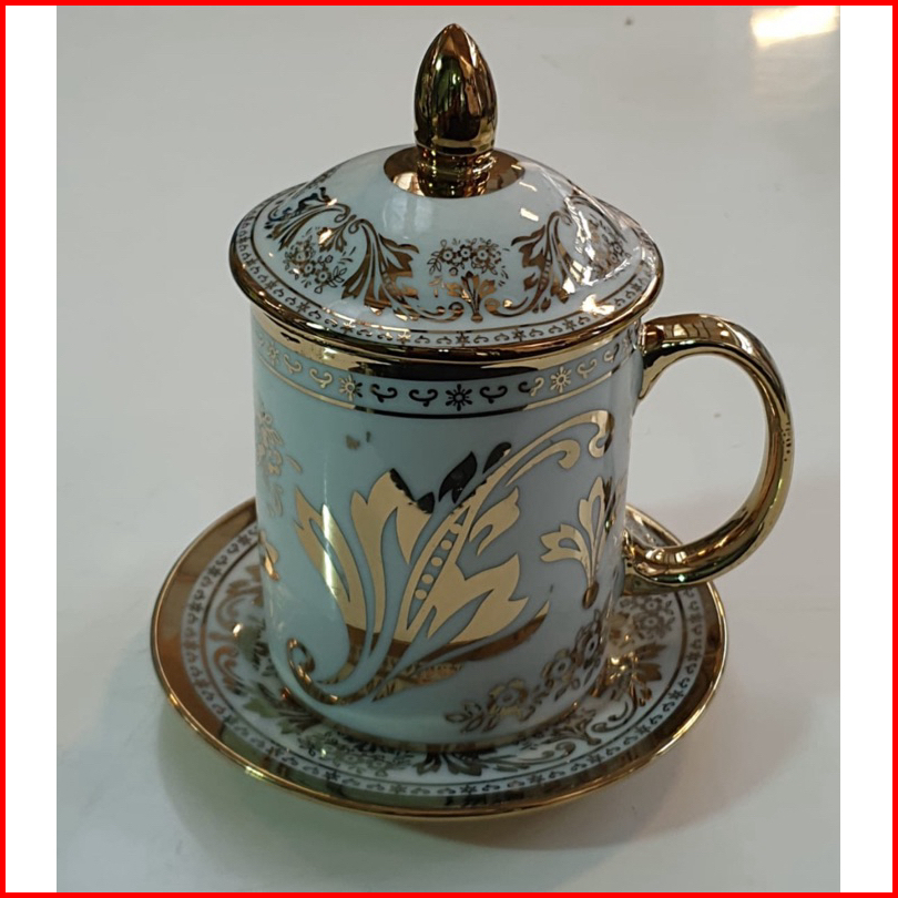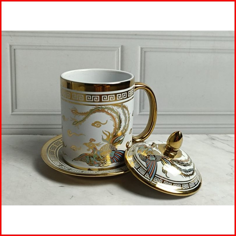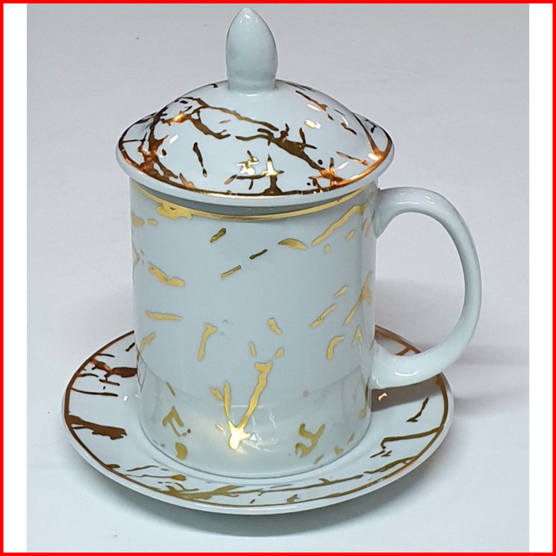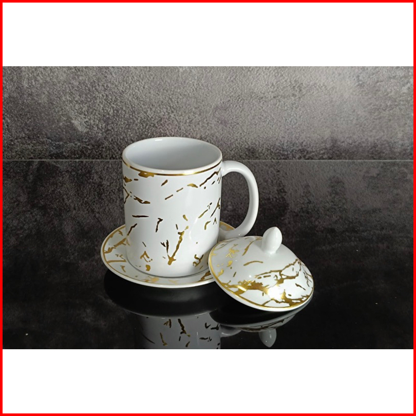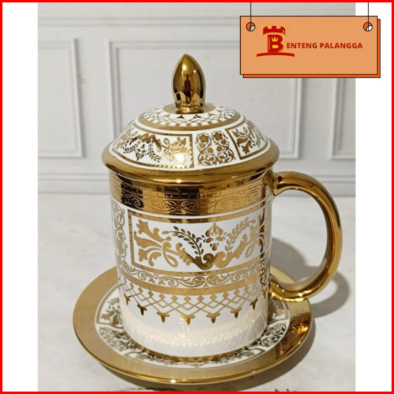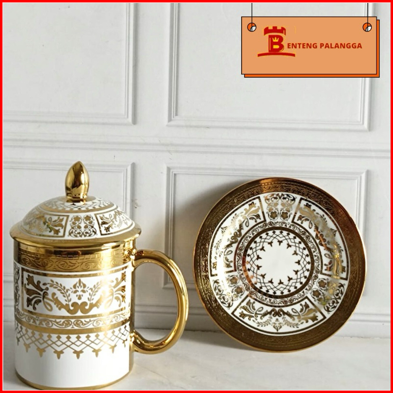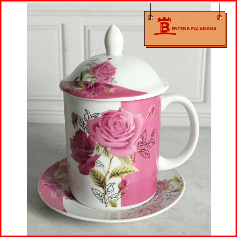 Mug Tutup Alas Keramindo Cangkir Minum Kopi Teh Cantik Kuat Tahan Panas Bahan Keramik Batu