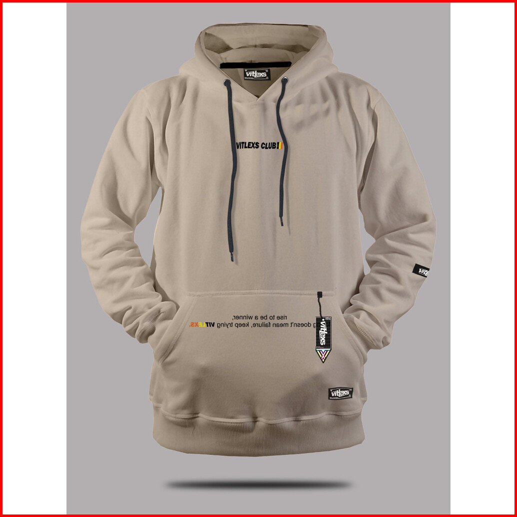 Vitlexs Jaket Hoodie Cowok Bahan Tebal Hoodie Pria Distro Aesthetic Warna Beige Sweater Hodie Distro