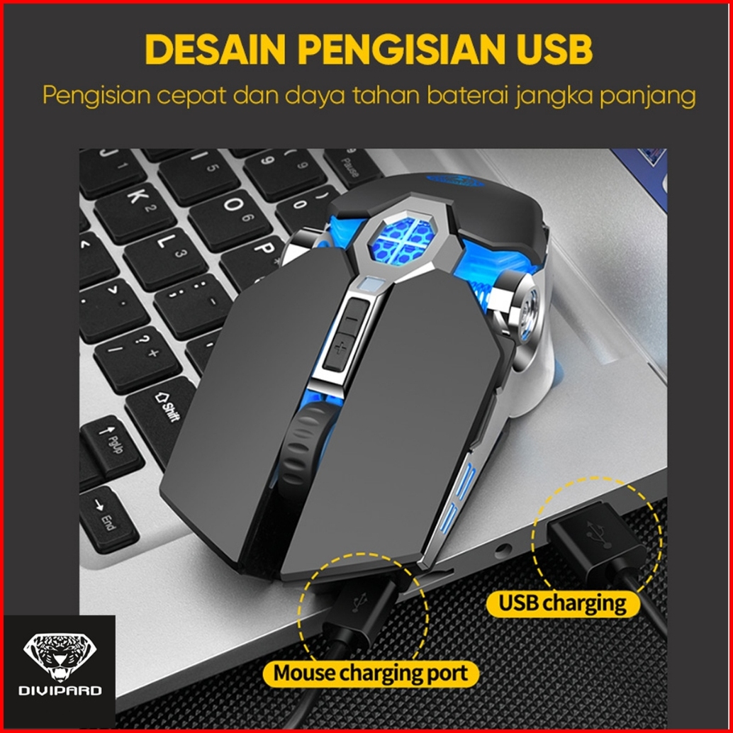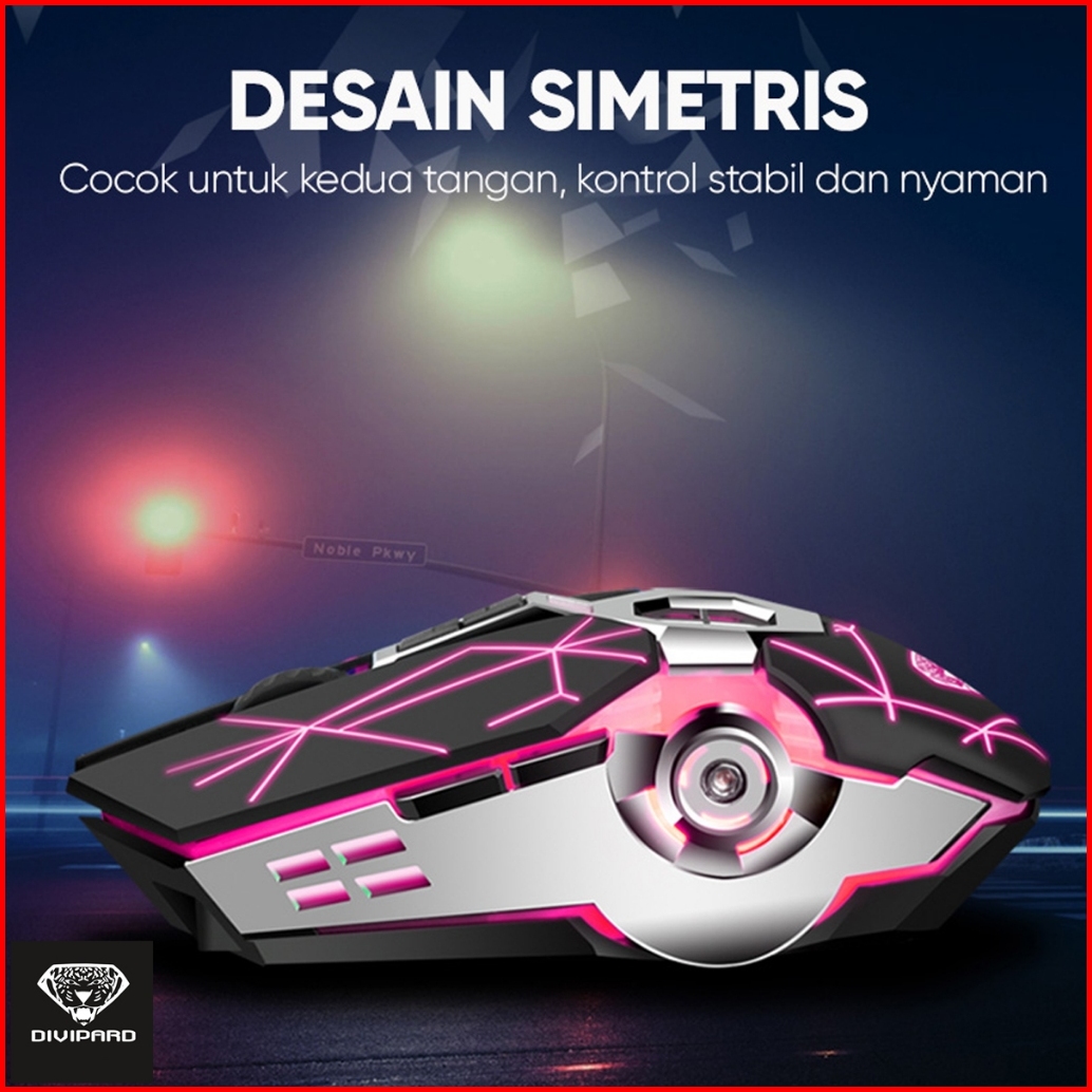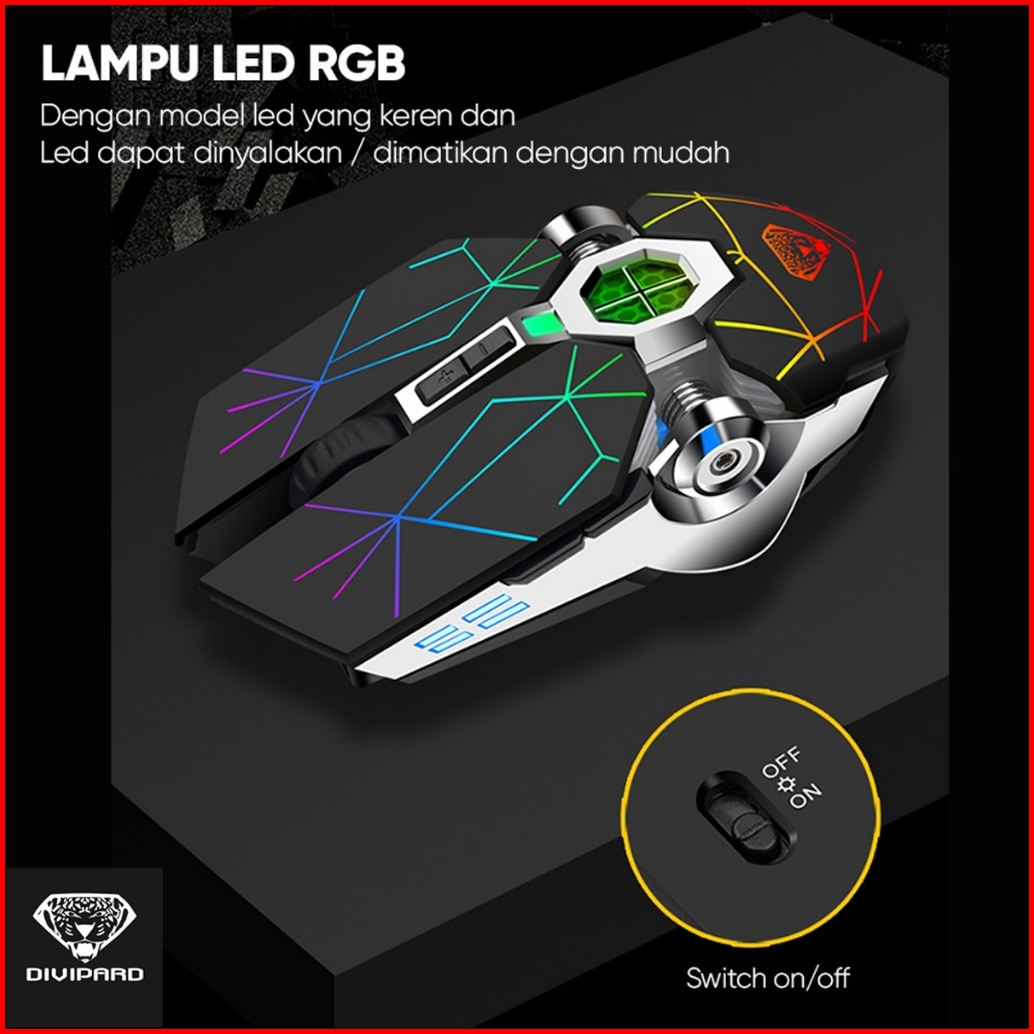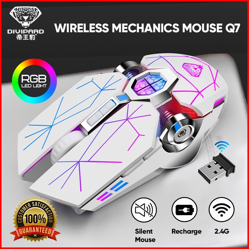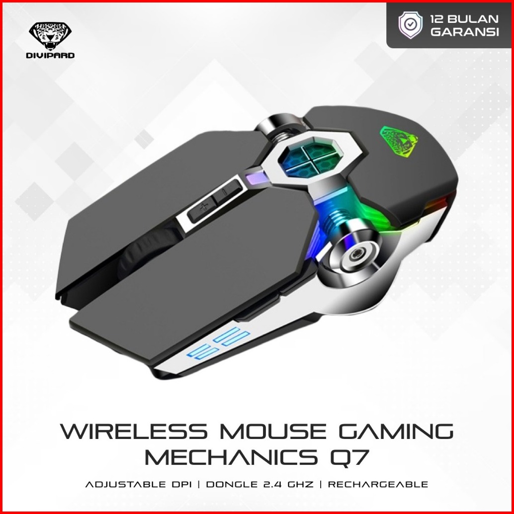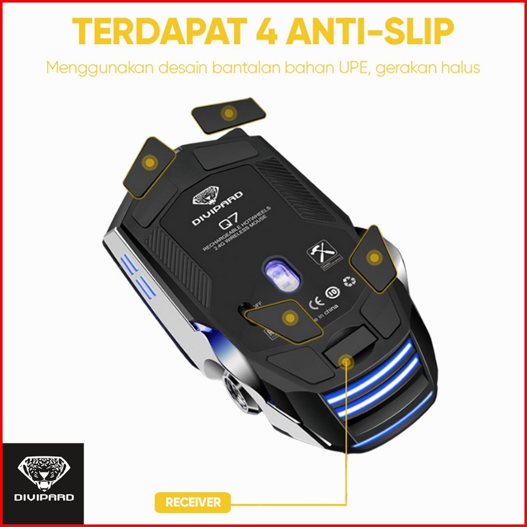 Mouse Gaming Wireless Divipard Q7 Rechargeable Silent Led Rgb Untuk Komputer Notebook Laptop