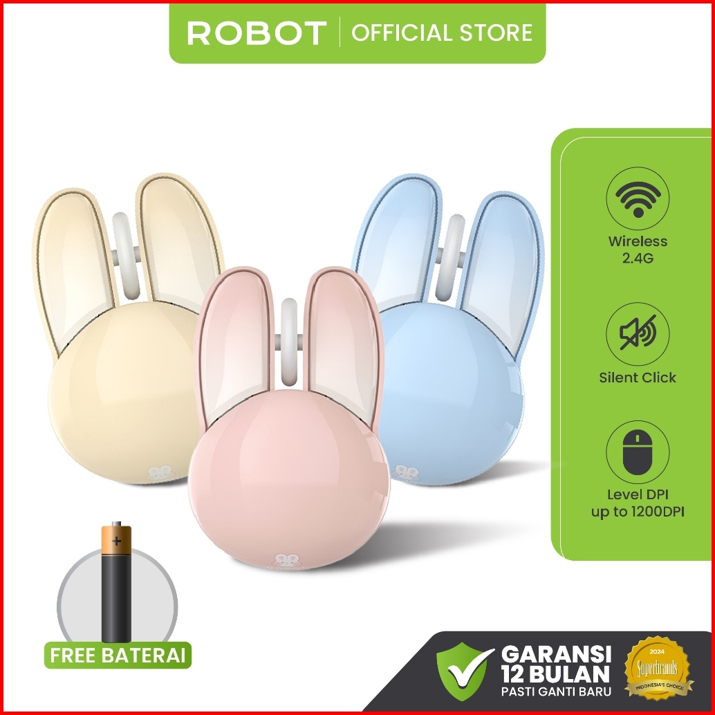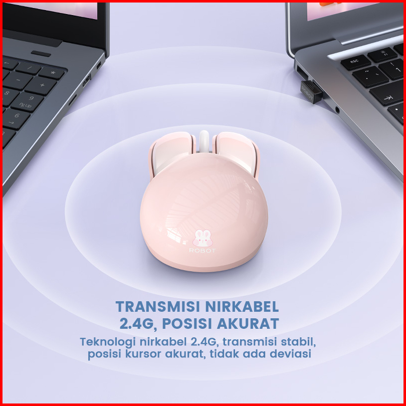Robot Mouse Wireless Silent Key Rabbit Kelinci Lucu M380 Tanpa Kabel Pc Laptop Mac Original Garansi 1 Tahun