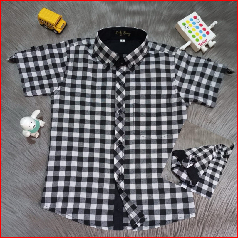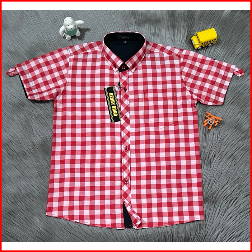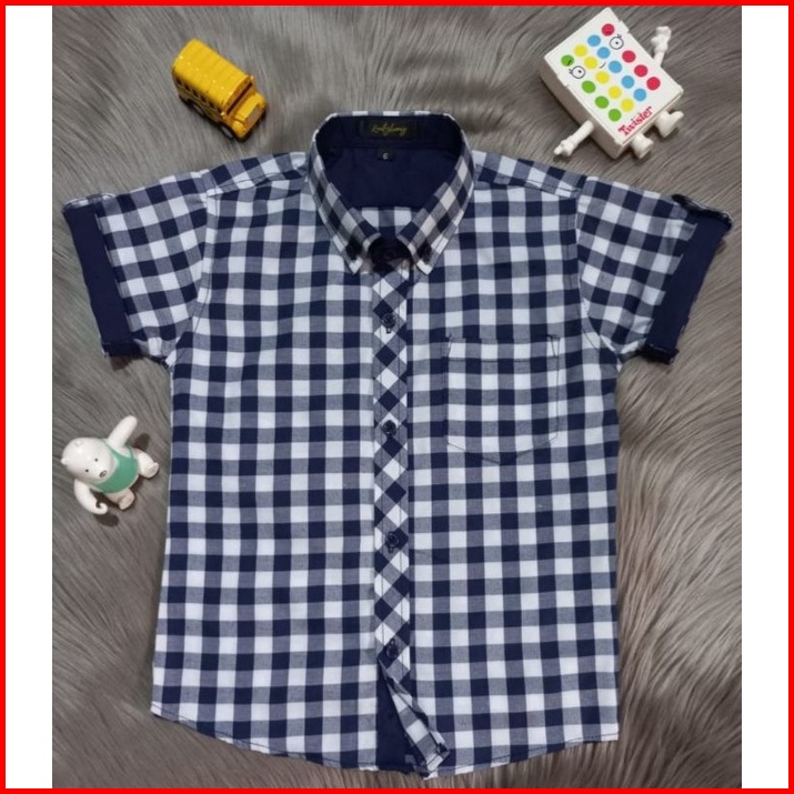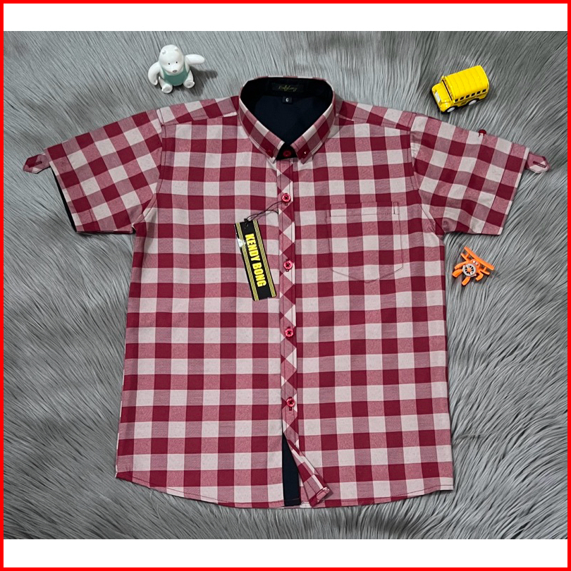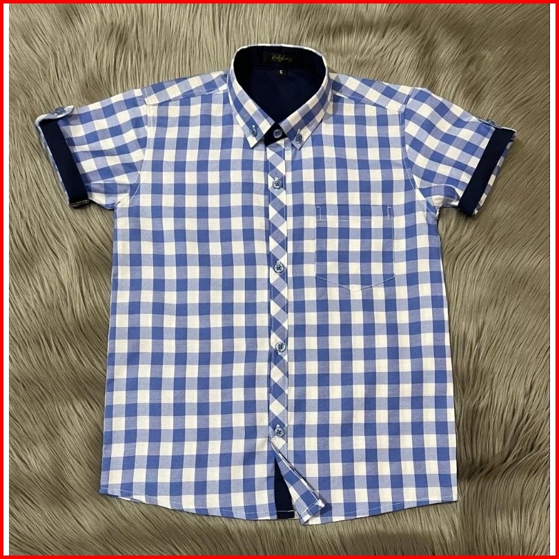 Kemeja Kotak Kombinasi Anak Laki-laki Kemeja Lengan Pendek Skoder Usia 3 - 14 Tahun