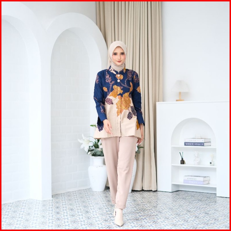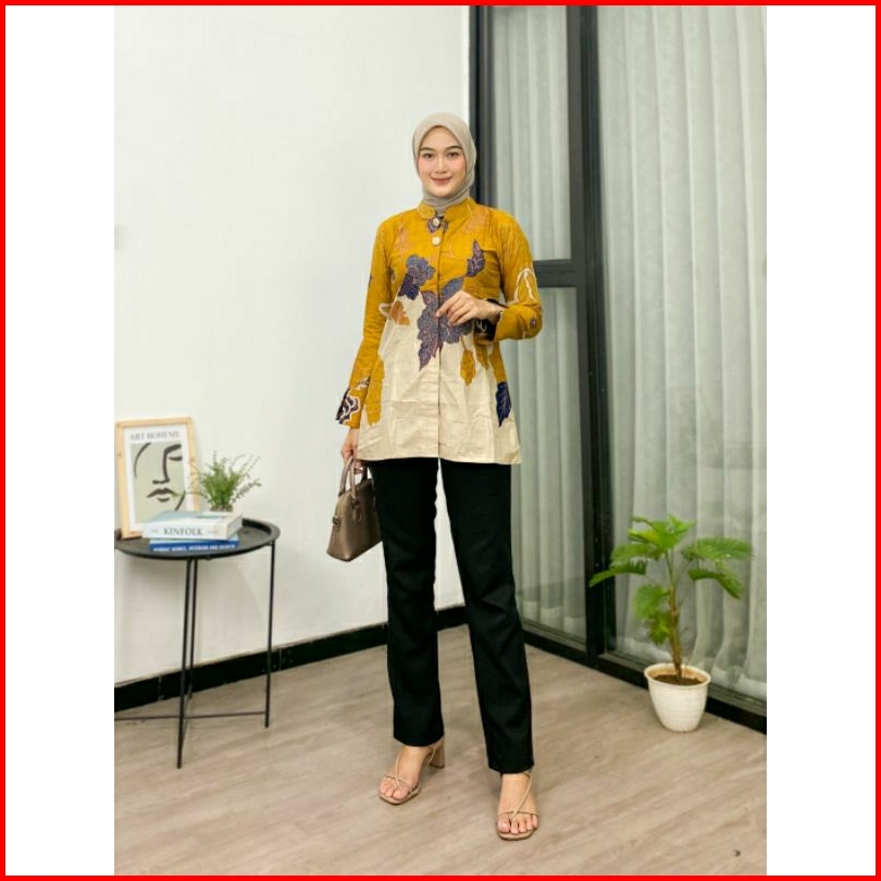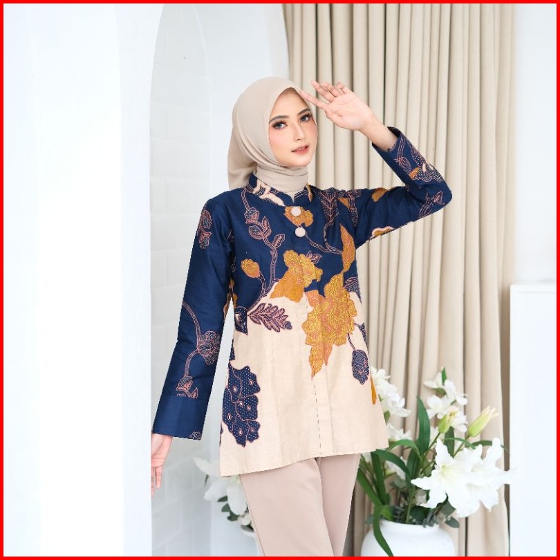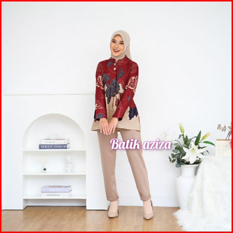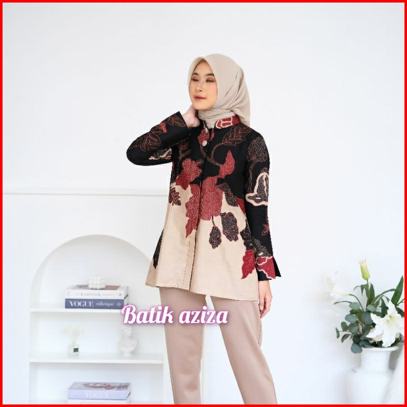 Batik Wanita 2in1 Blouse Dan Outer Batik Wanita Modern Kancing Depan Blouse Mawar By Batik Aziza