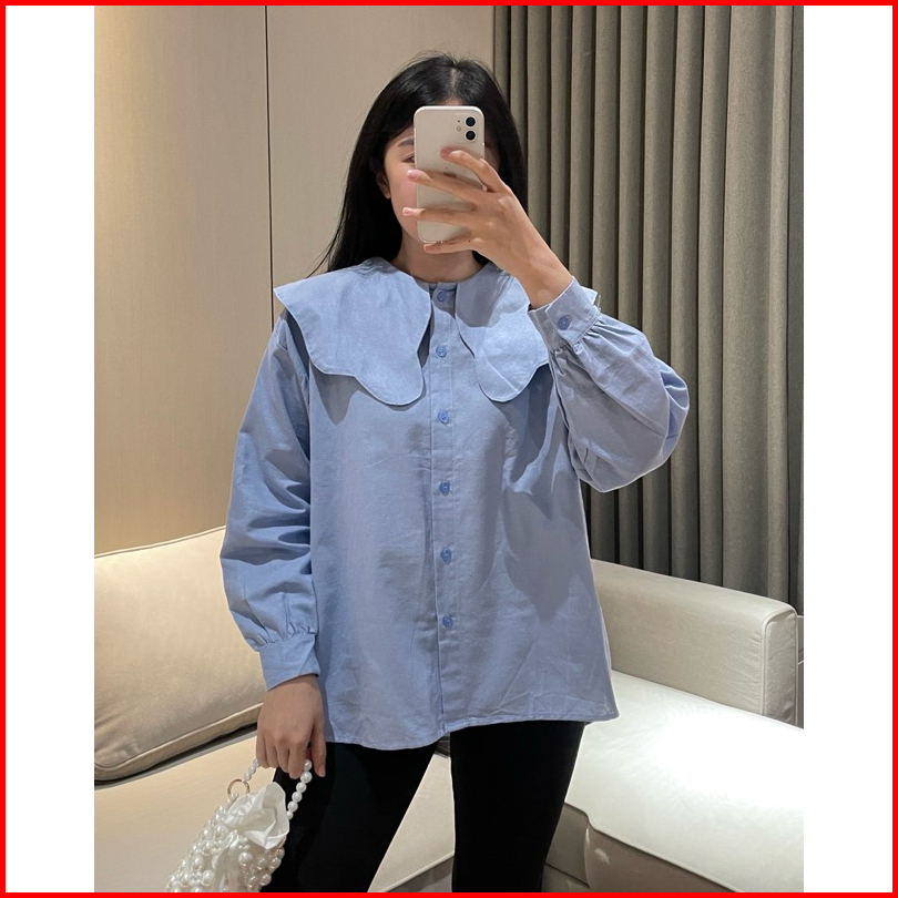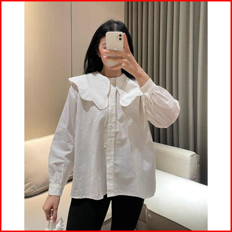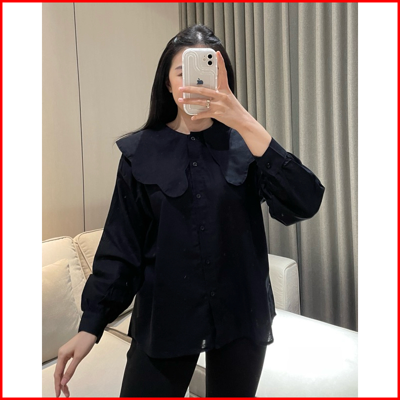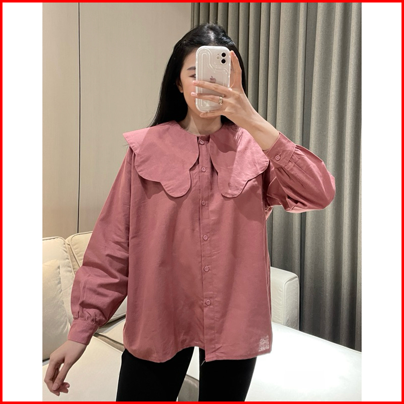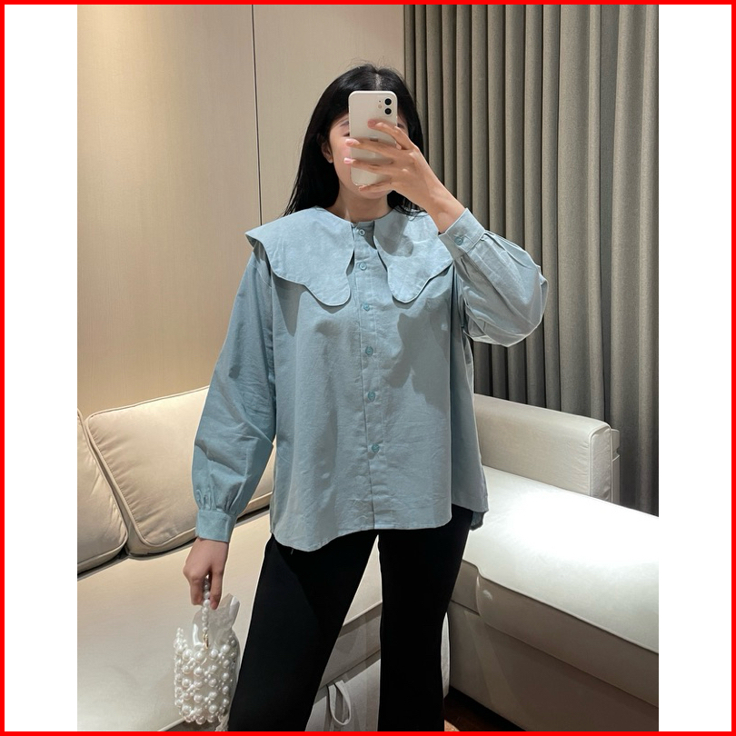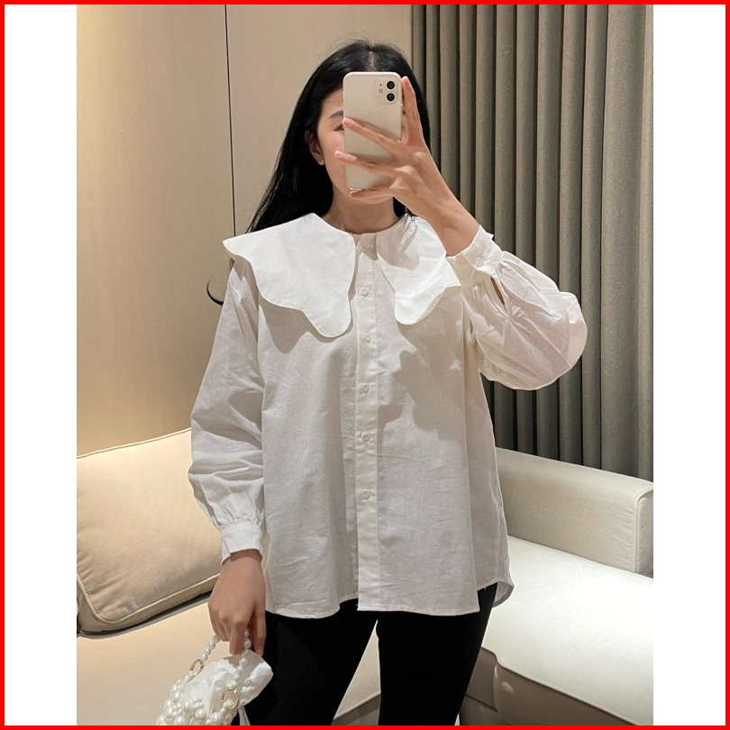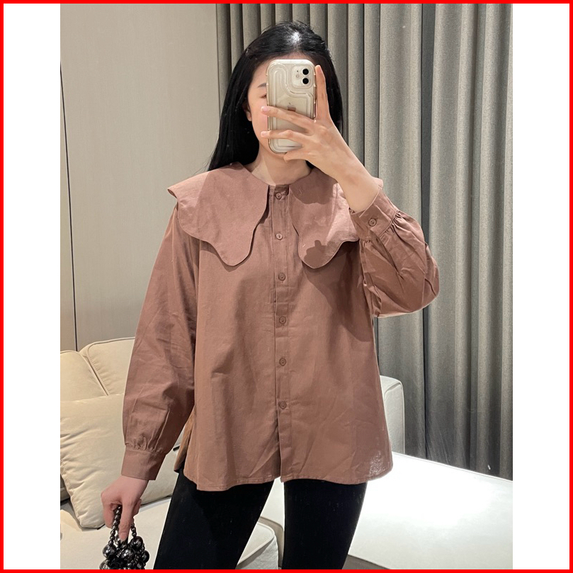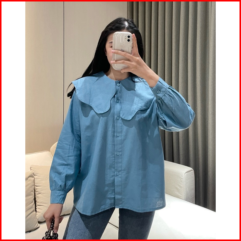 Eska - Betty Linen Blouse Kemeja Wanita Kerah Sailor Shirt Kantoran Elegan Kekinian Lengan Panjang Oversize
