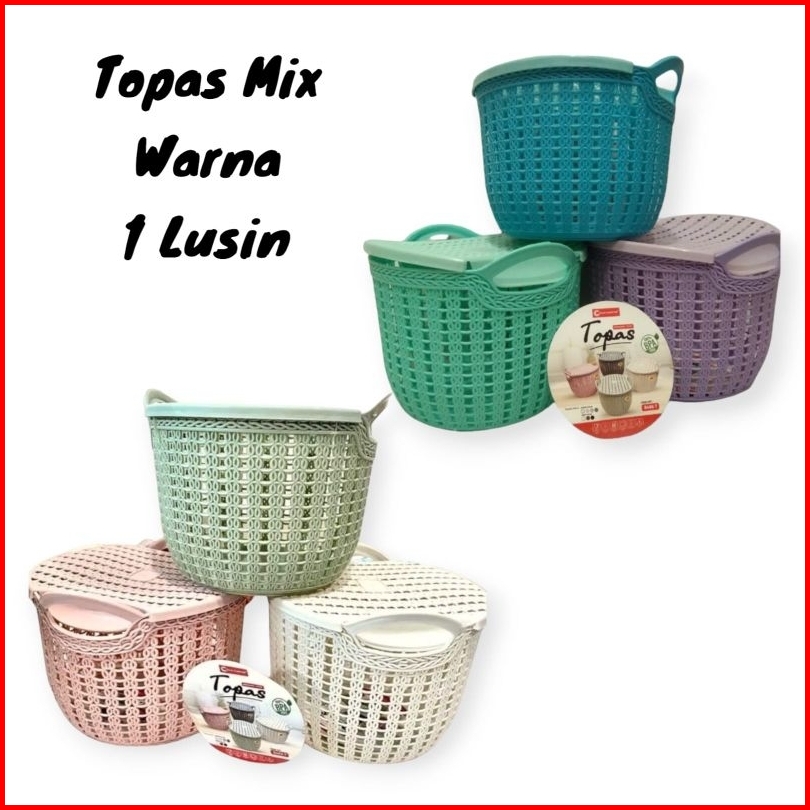 Paket 1 Lusin Mix Keranjang Serbaguna Tutup Keranjang Topas Tutup Keranjang Serbaguna Topas Tutup