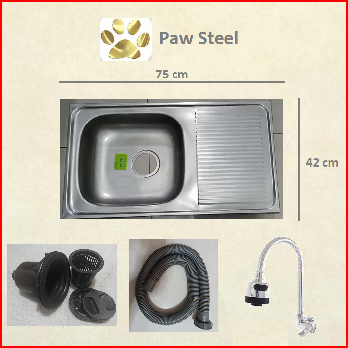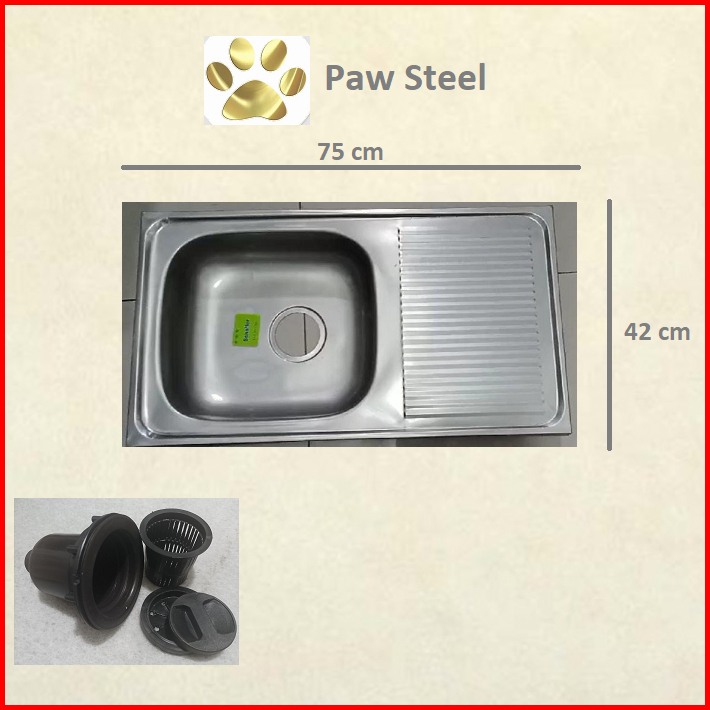 Bak Cuci Piring Kitchen Sink Stainless Steel 75x42cm