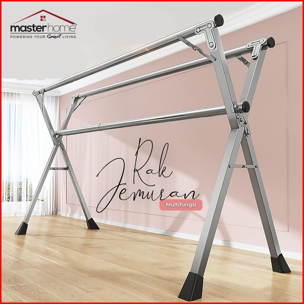 Masterhome Jemuran Baju Lipat Stainless Steel 200cm Jemuran Pakaian Anti Karat Kuat Tempat Jemuran Baju Portable Stainle