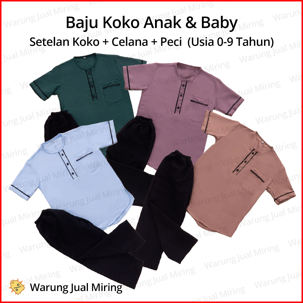 Setelan Koko Anak 0-9 Tahun Sarkoci Set Baju Celana Panjang Peci Kemeja Laki Cowok Cowo Newborn New Born Baby Bayi Tk Sd