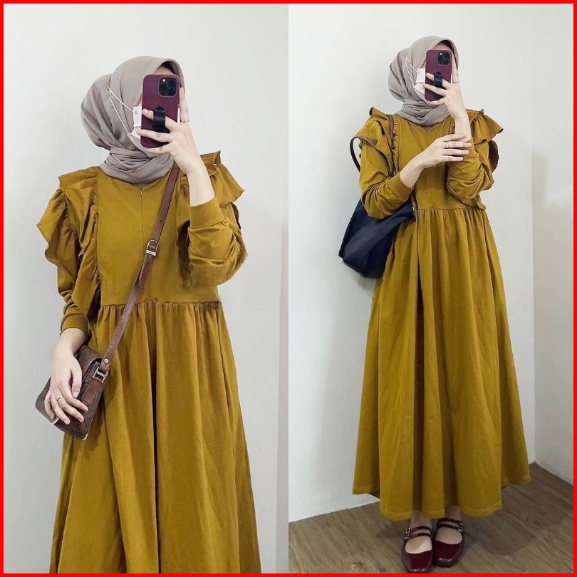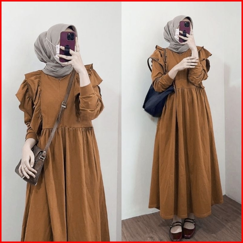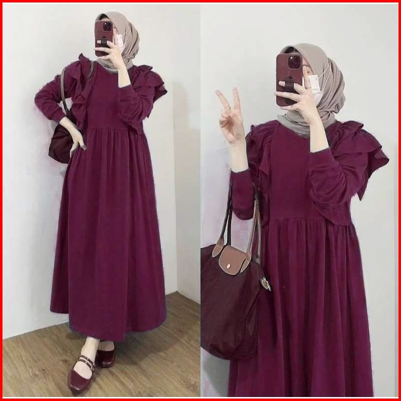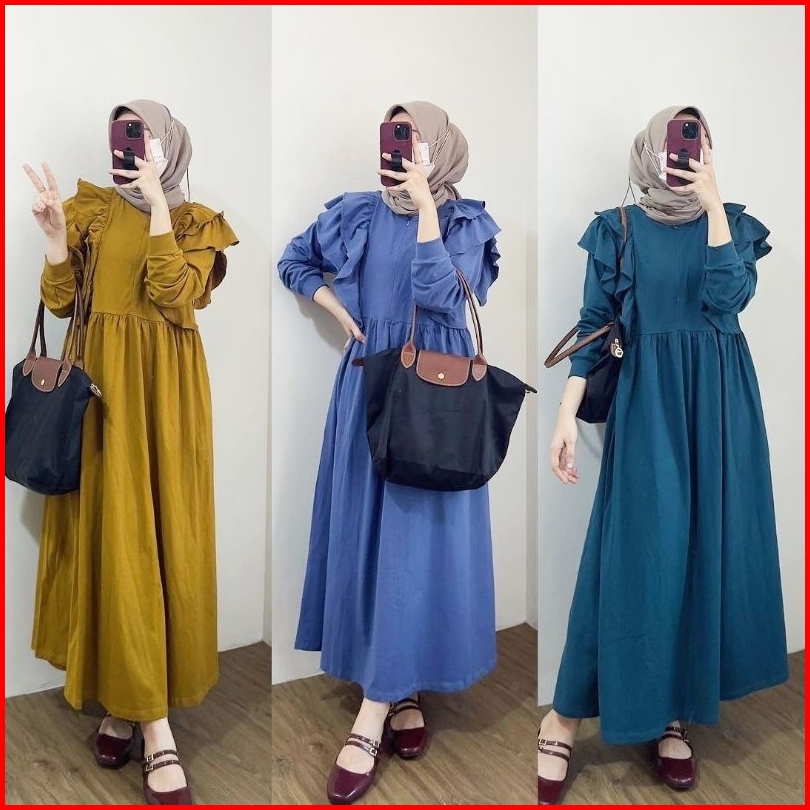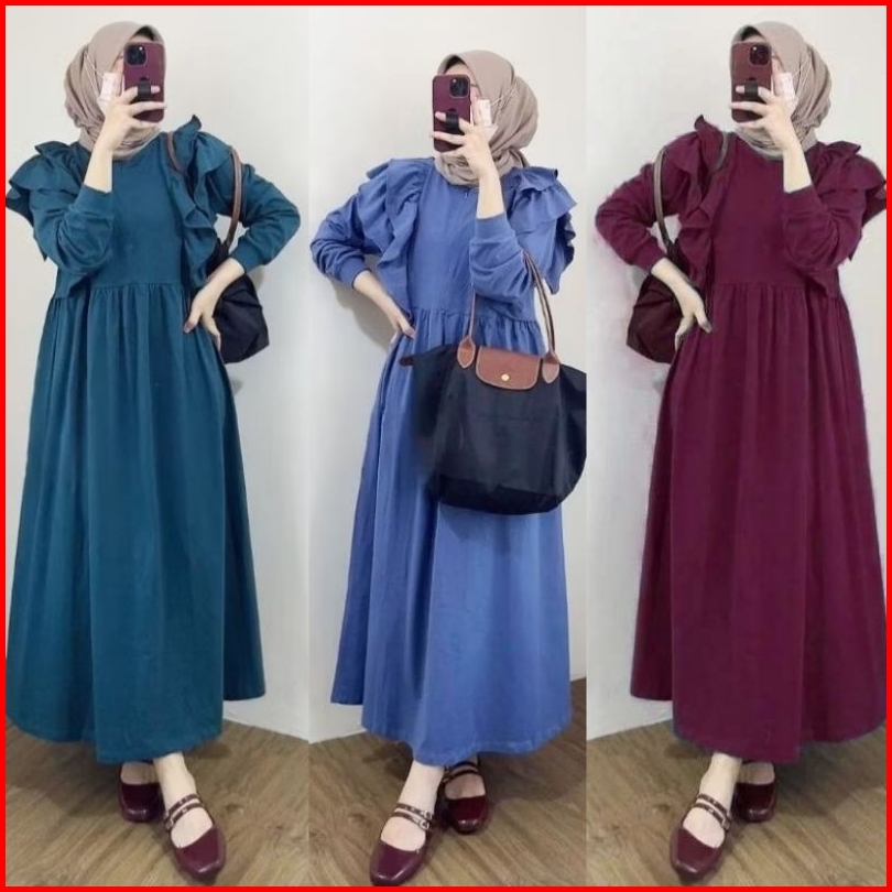 Meldi Ruffle Dress Premium Gamis Crinkle Airflow