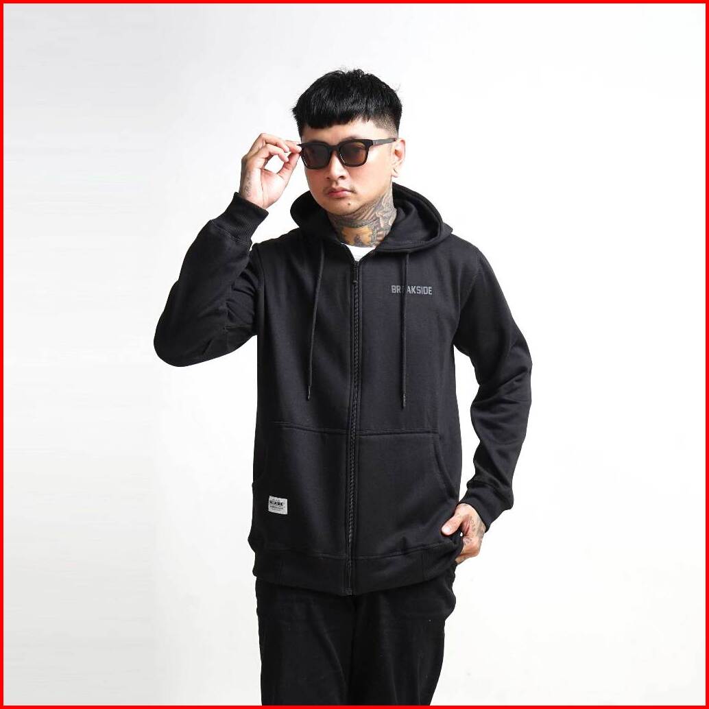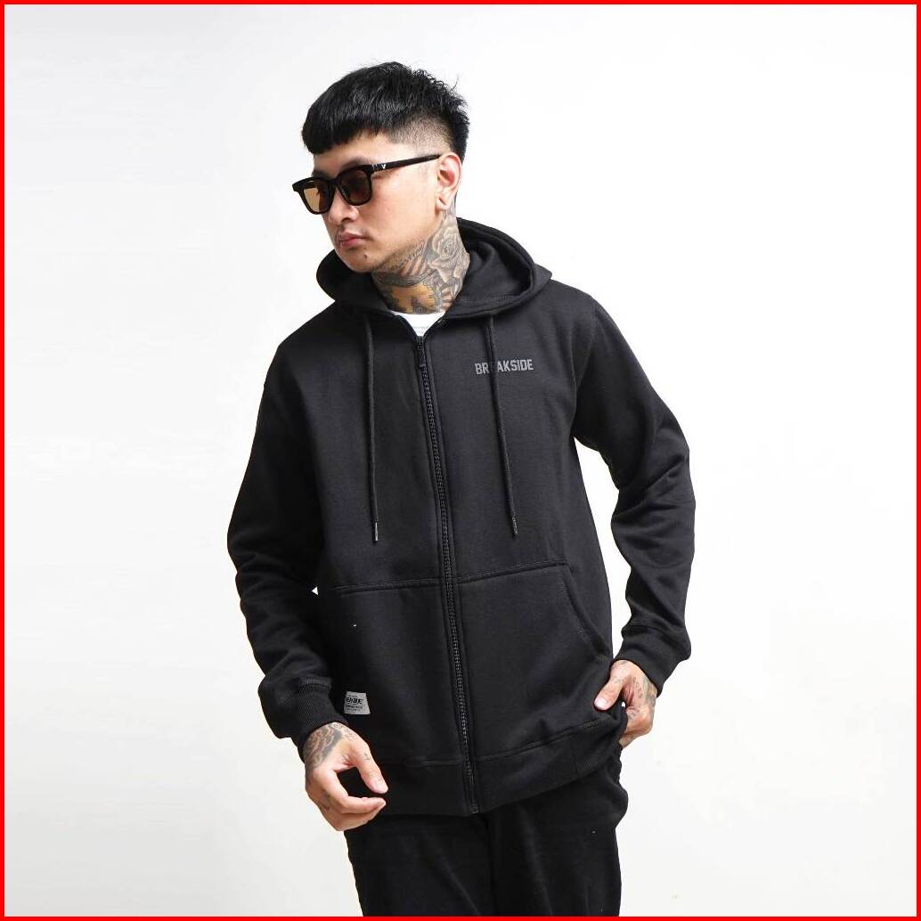 Breakside Zipper Hoodie Weekend - Black Sweater Pria
