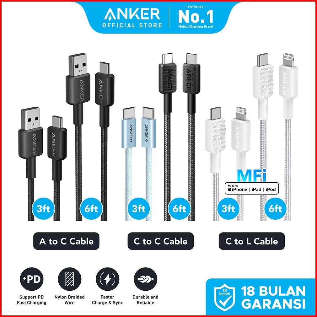Anker Kabel Data Mfi Iphone X 11 12 13 14 15 16 Pd Usb A Type C To C And Lightning Fast Charging 15w 60w 240w 3ft 6ft Ma