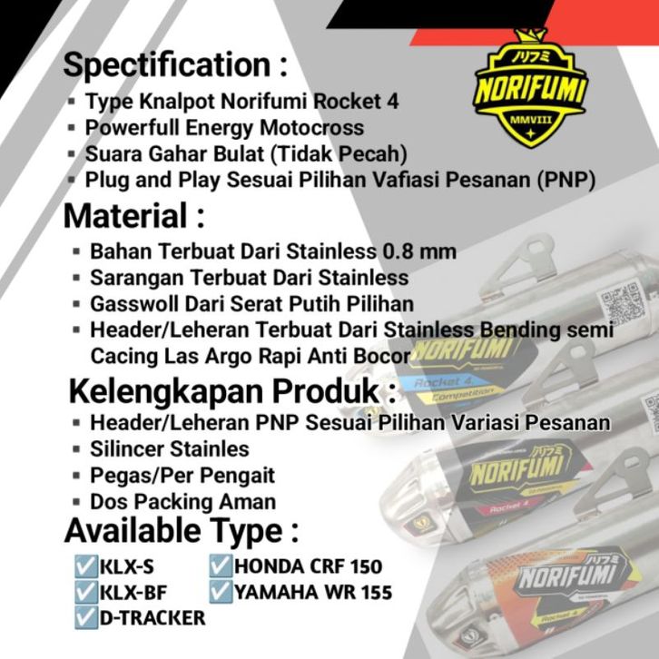 Knalpot Kenalpot Racing Crf/ Klx/ Wr155/ Custom Trail Racing Premium Series Universal Racing Trail Standart Racing