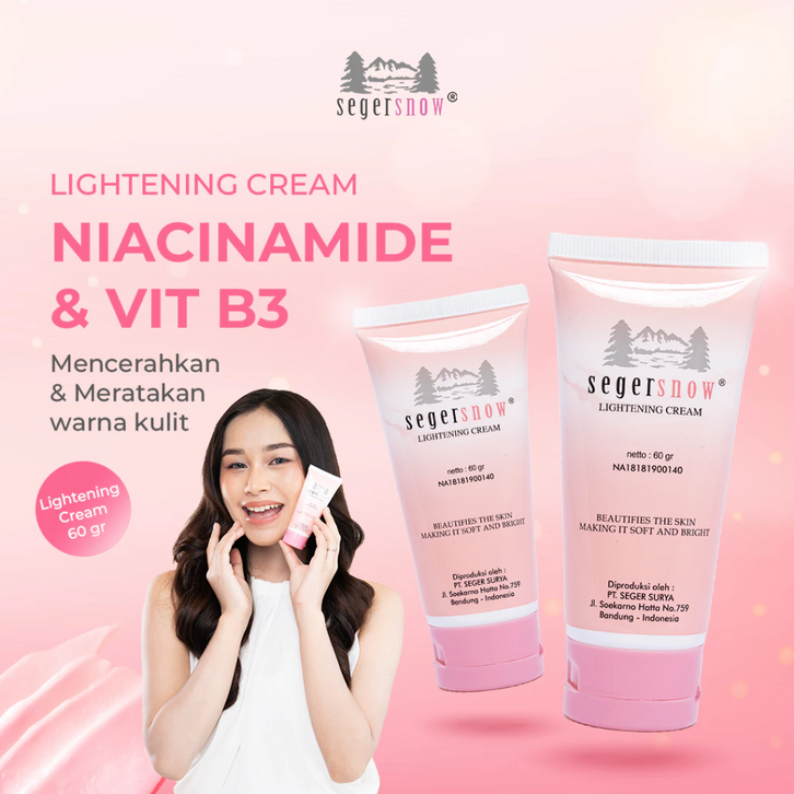 Seger Snow Lightening Cream Tube 60gr Vitamin B3 Melembabkan dan Mencerahkan Kulit Menyamarkan Noda dan Bintik Hitam