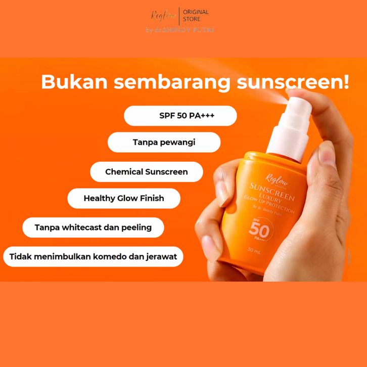 Reglow Sunscreen Luxury Glow Up Spf 50 PA+++ Chemical Sunscreen Wajah Tanpa Whitecast