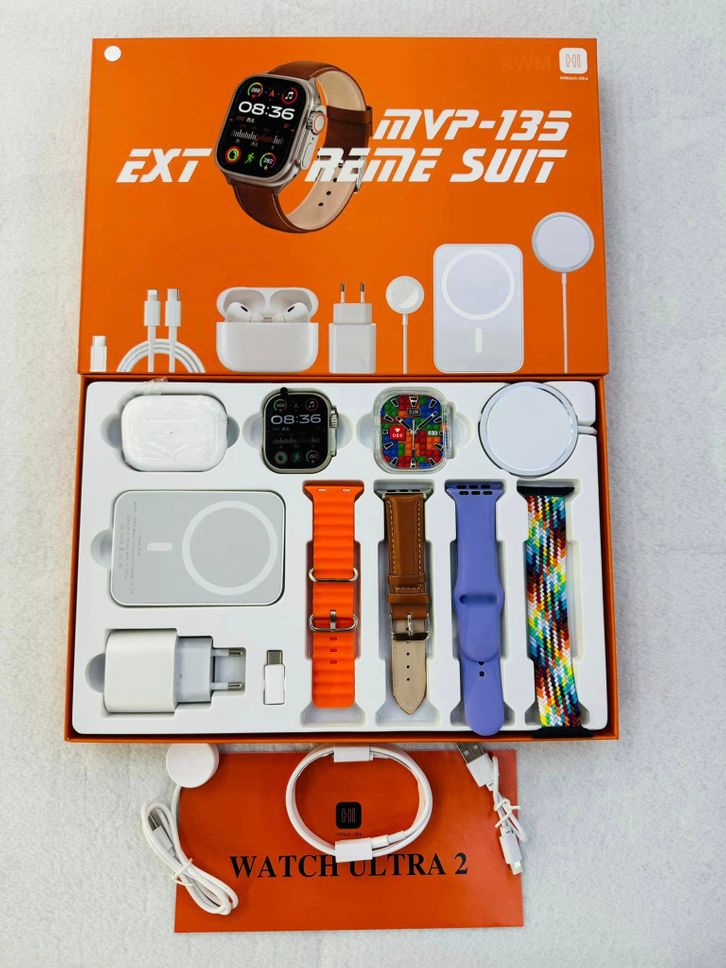 Smartwatch MVP-135 Extreme Suit watch ultra Paket Lengkap Wireless Charger Powerbank 4 straps Charger silikon case Paket