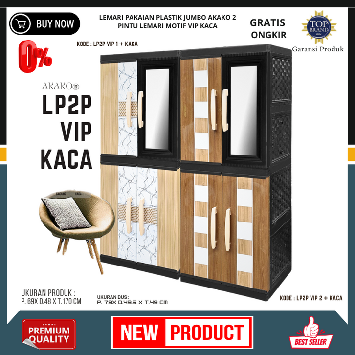 LEMARI PAKAIAN PLASTIK JUMBO AKAKO 2 PINTU LEMARI MOTIF VIP KACA /KODE: LP2P - VIP JUMBO KACA