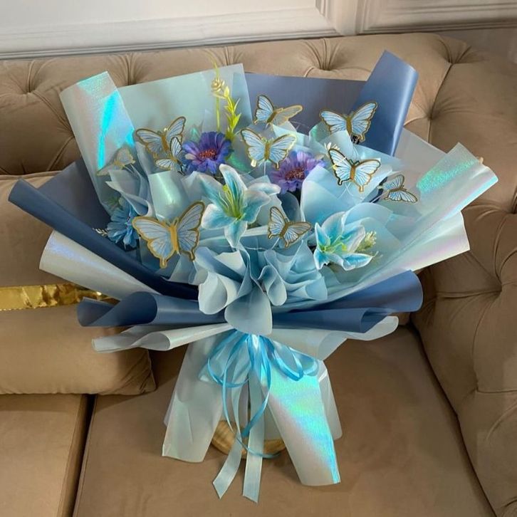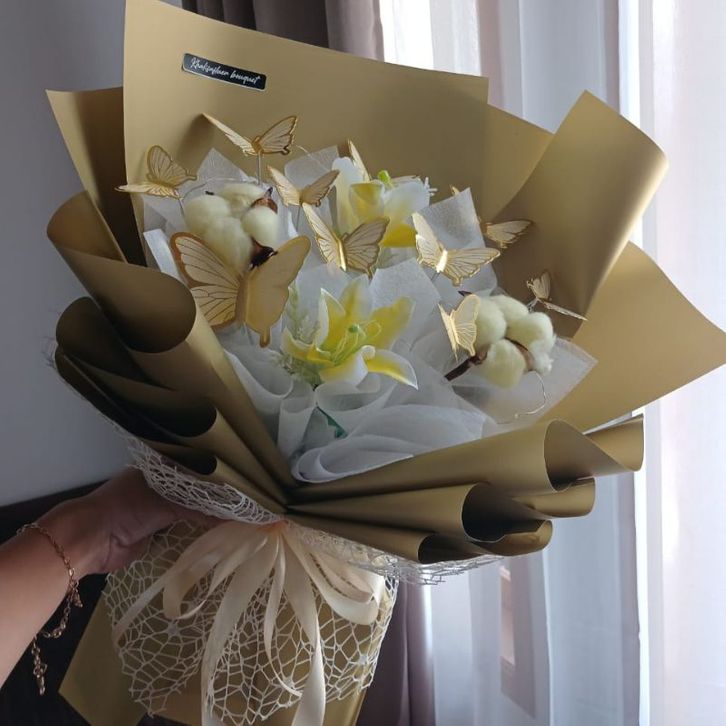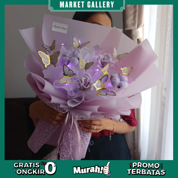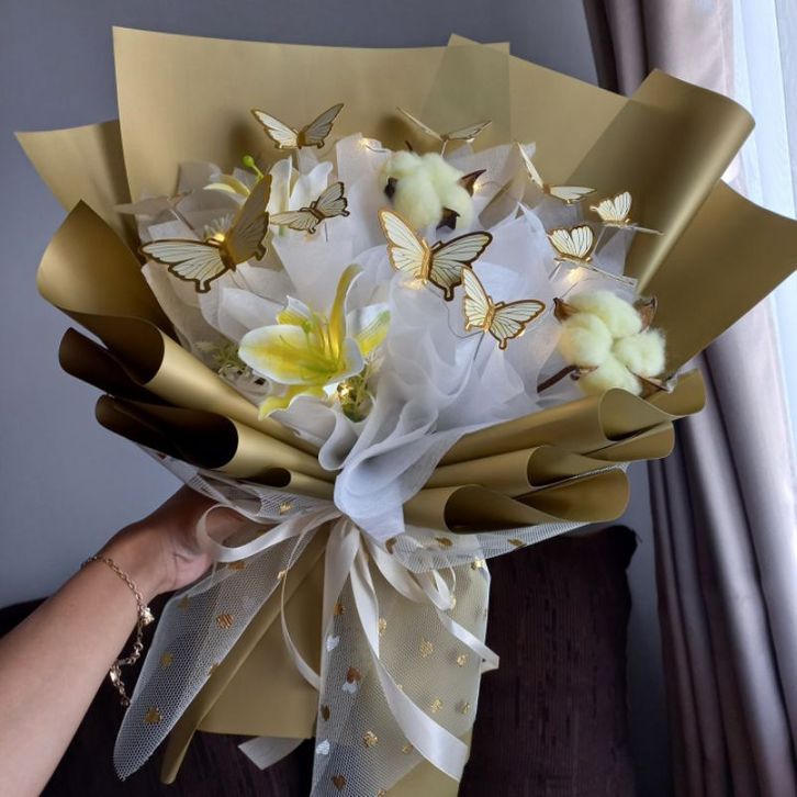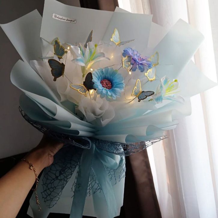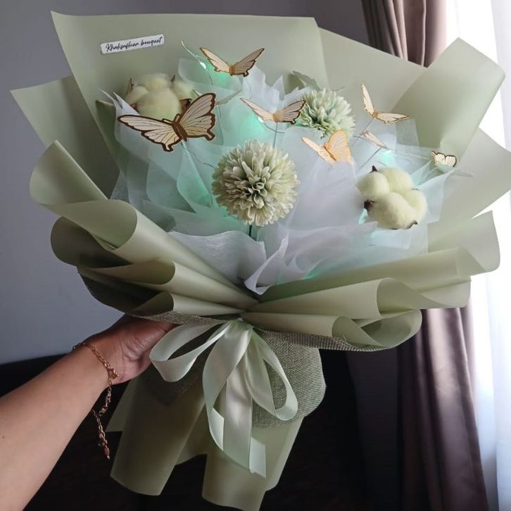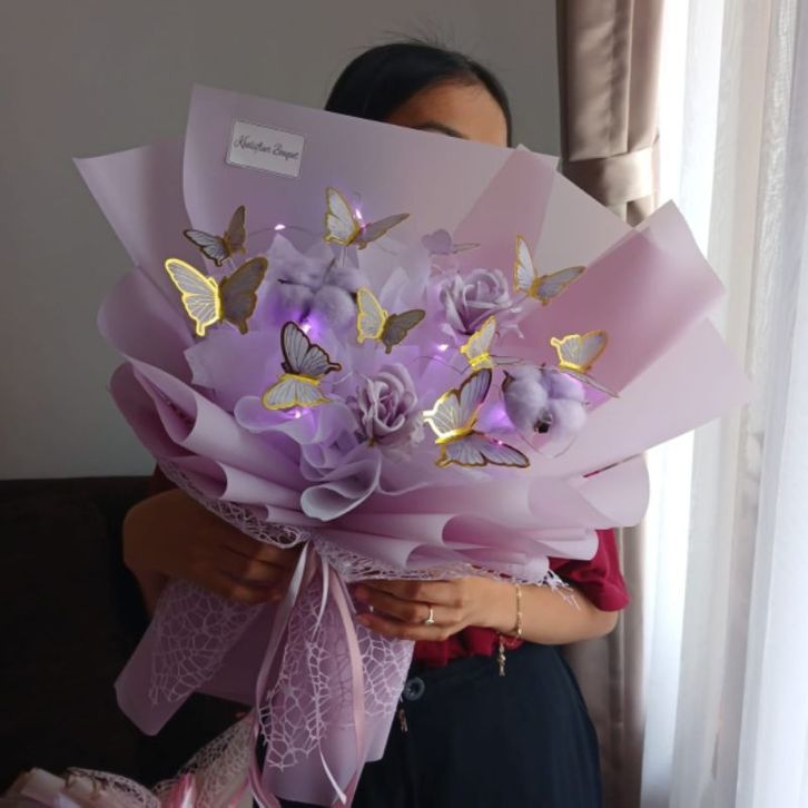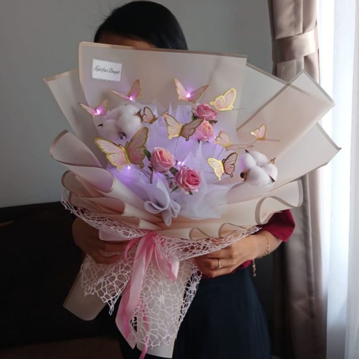 [Star] Buket Bunga Artificial Buket Kupu Kupu Led Plus Bunga