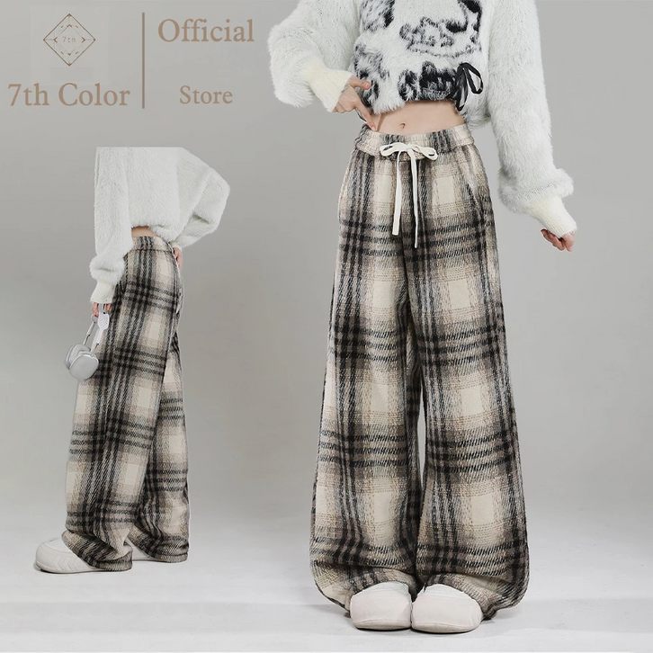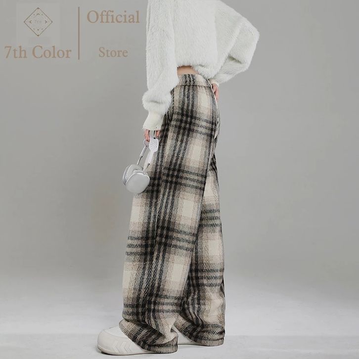Celana Santai Wol Motif kotak-kotak Celana Korean Style Celana Kulot Wanita