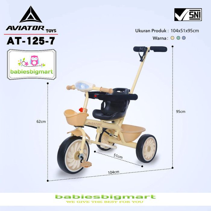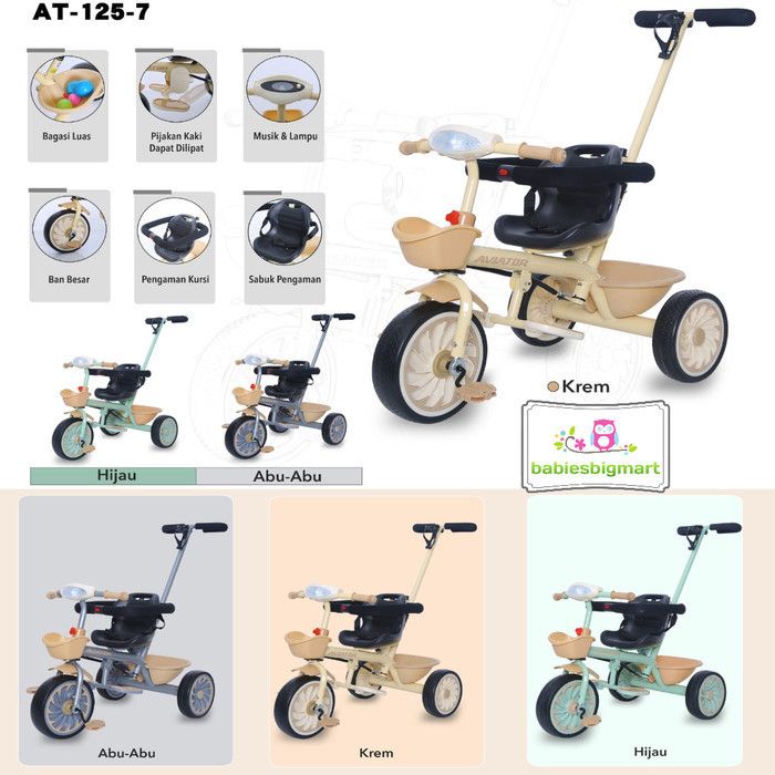 Aviator At 125-7 Sepeda Anak Roda 3 Tiga Tricycle Dorongan Dilengkapi Music Lampu