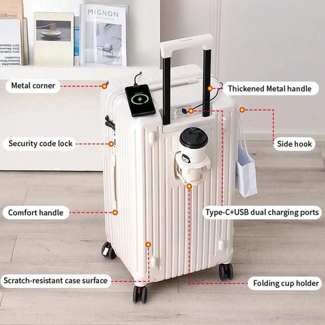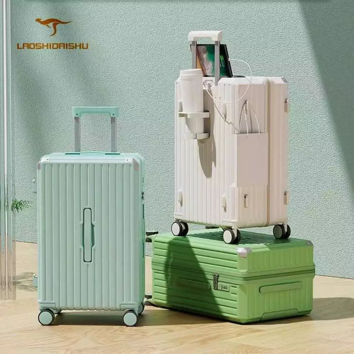 [PROMO] Laoshidaishu Koper Kabin Bagasi Size 20/28 Inch - Desain Stand cup charger Usb Bergaransi