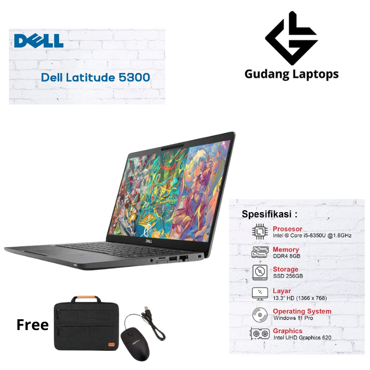 Dell Latitude 5300 Intel Core i5 Gen 8 Ram 8GB SSD 256GB 13.3" Windows 11 Siap Pakai Bergaransi