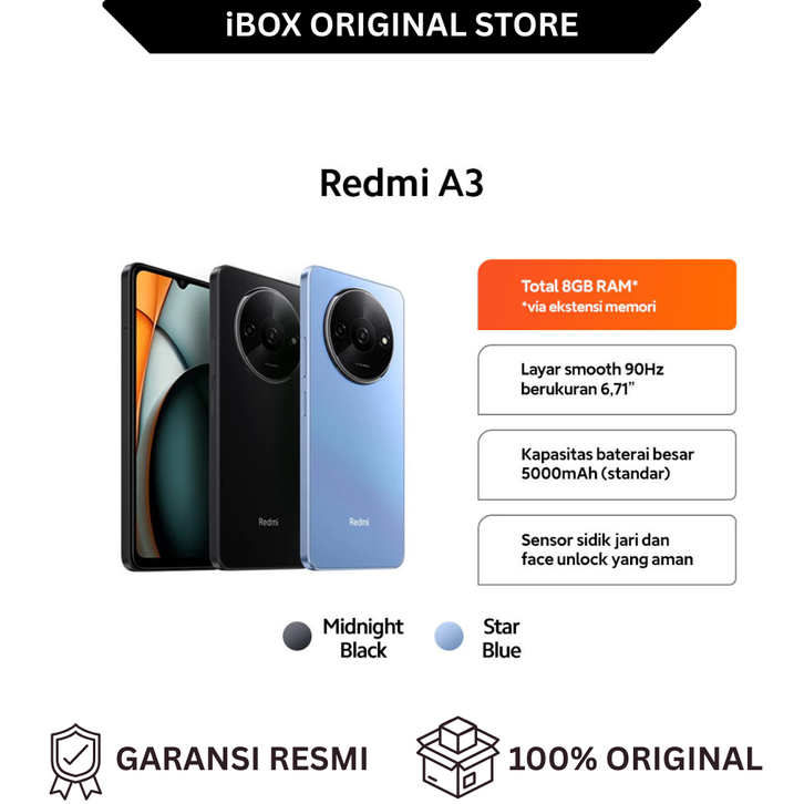 Official Redmi A3 (4GB/128GB) | Layar Muluz 90 Hz berukuran 6.71" kapasitas baterai 5000 mAH