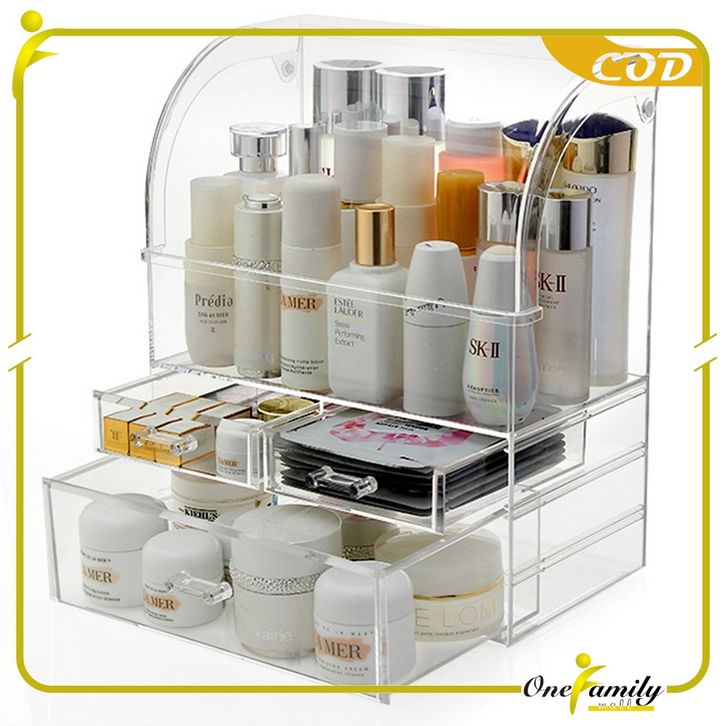 RAK KOSMETIK DENGAN LACI ANTI DEBU TEMPAT MAKE UP SKINCARE RAK AKRILIK MULTIFUNGSI TEMPAT PENYIMPANAN DENGAN TUTUP MURAH