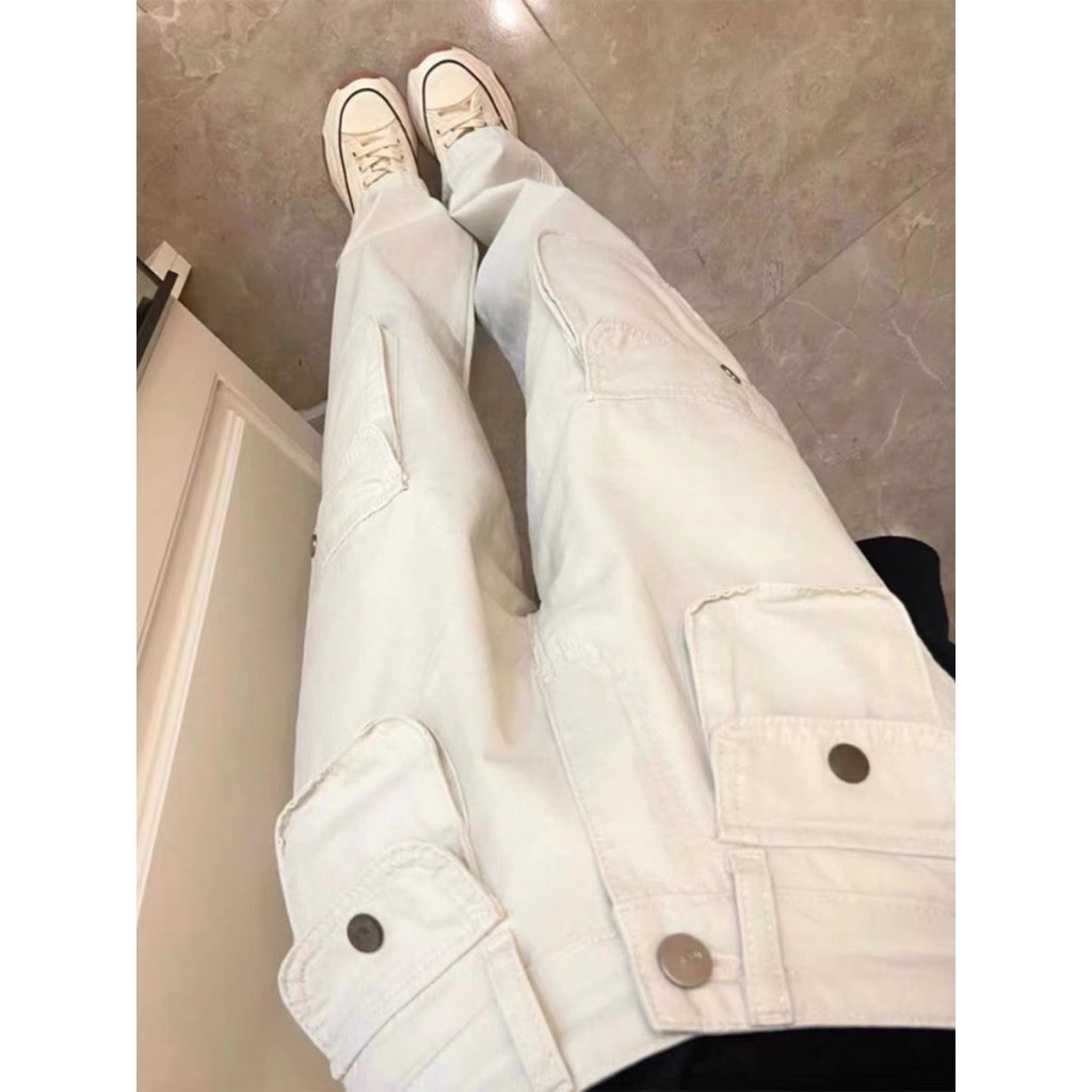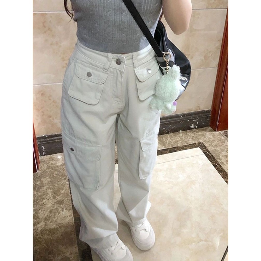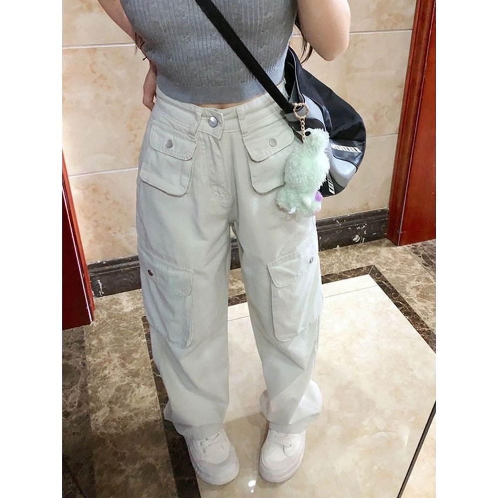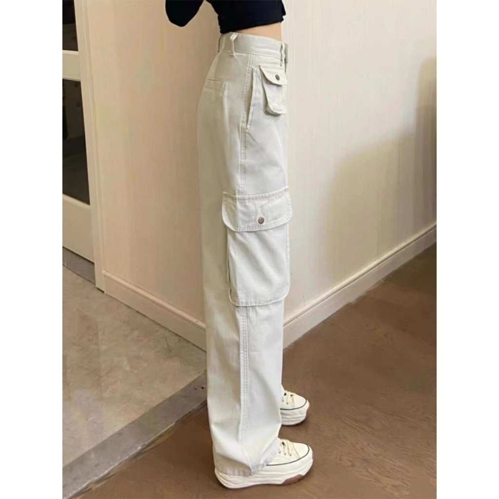 XIAOZHAINV CELANA JEANS KASUAL LONGGAR CELANA KULOT CARGO GAYA KOREA SEMUA COCOK UNTUK WANITA | CELANA JEANS HIGH WANITA CELANA CARGO WANITA HIGHWAIST