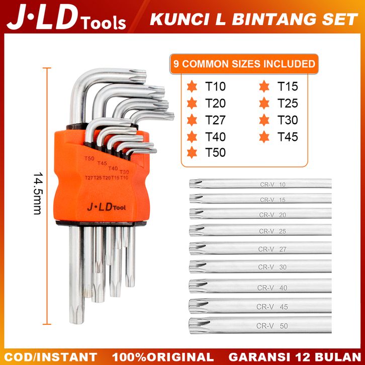 JLD 9Pcs Kunci L Set Kombinasi Ball and Bintang/Hex Key 1.5 - 10 mm Pendek or Panjang kunci set/Kunci L Ball/Kunci L Bin